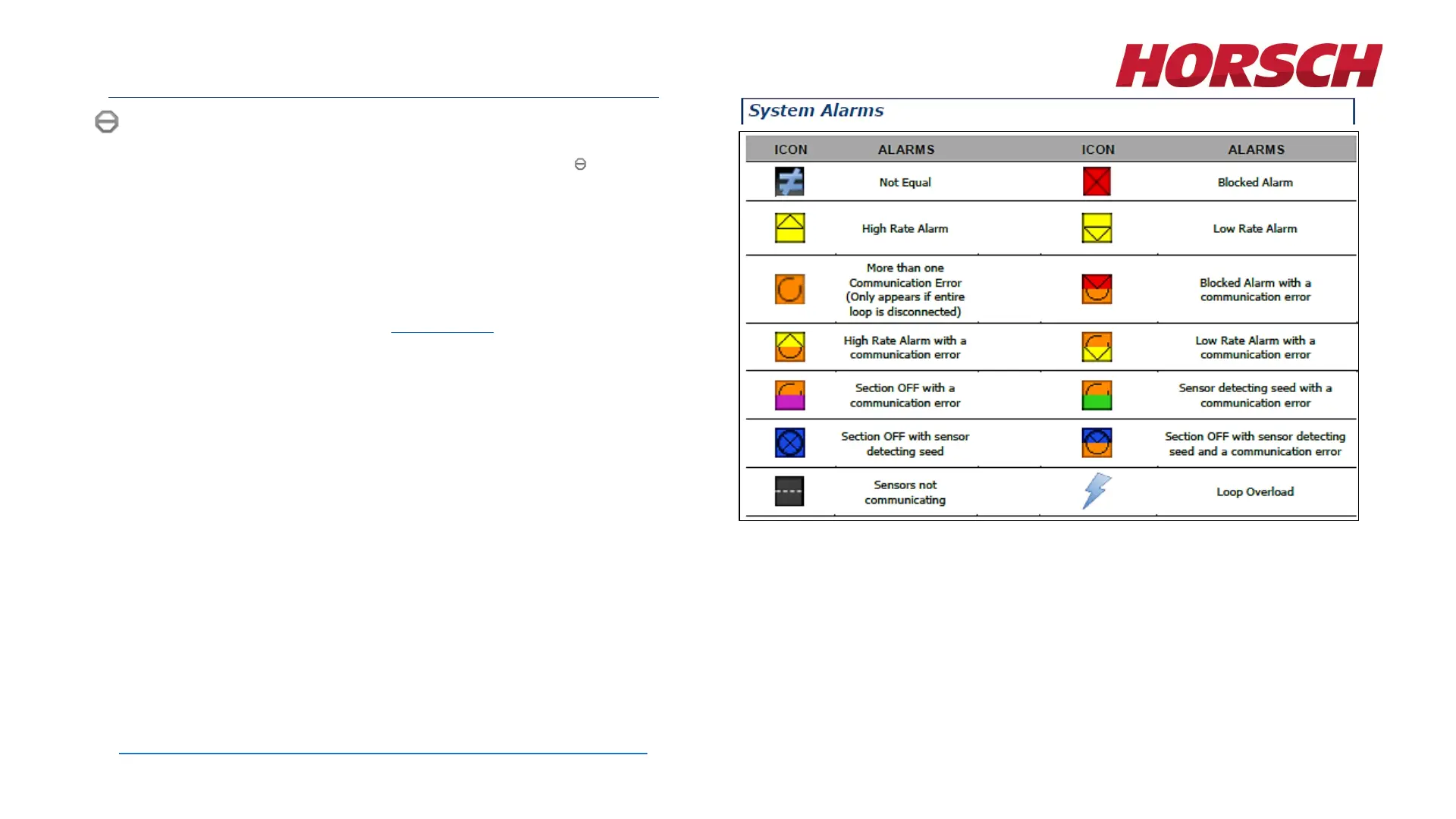 of system alarms, error codes and troubleshooting information see the operator’s manual included with the selected blockage monitor system option, or