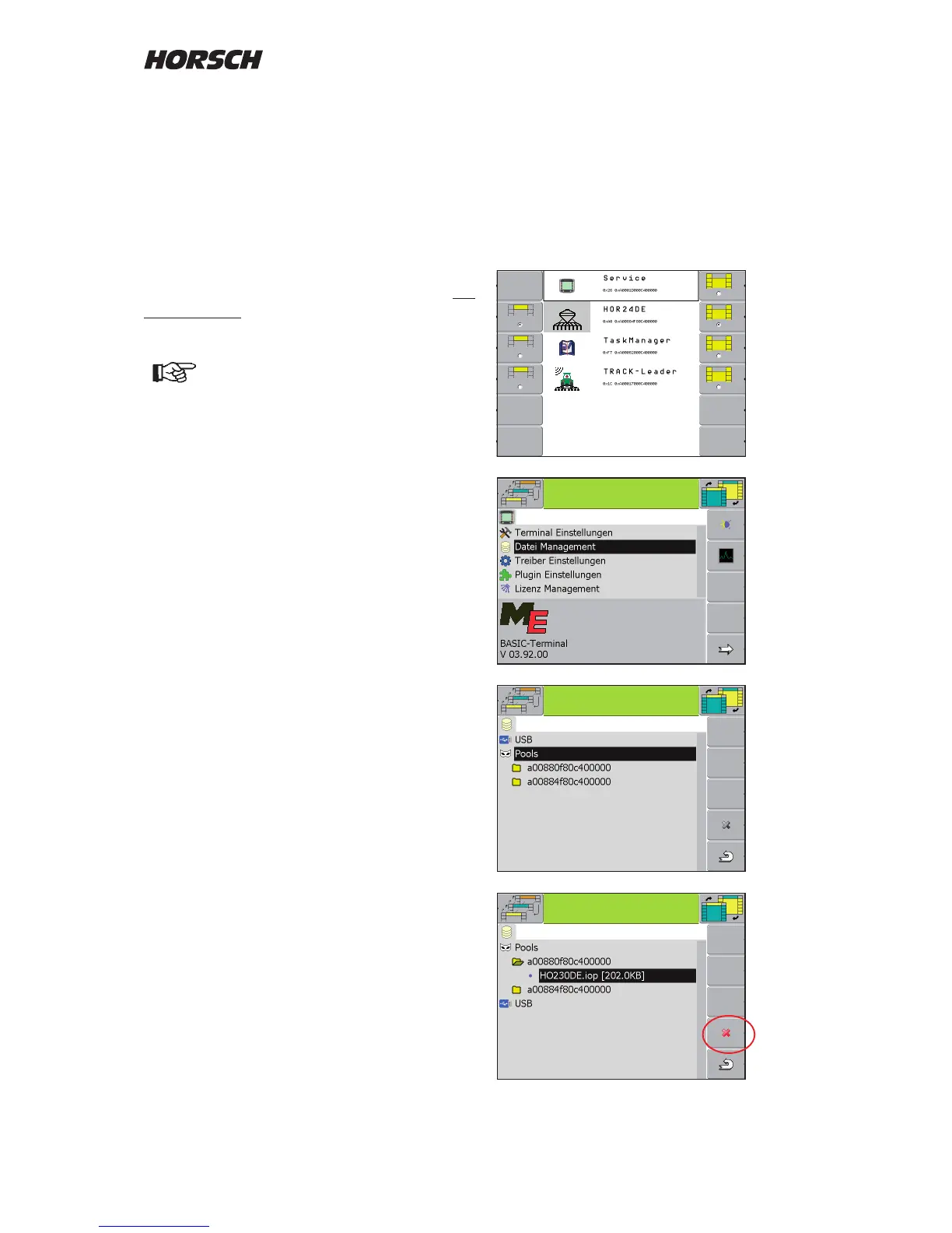 Choose the "Service" area. In the menu "File