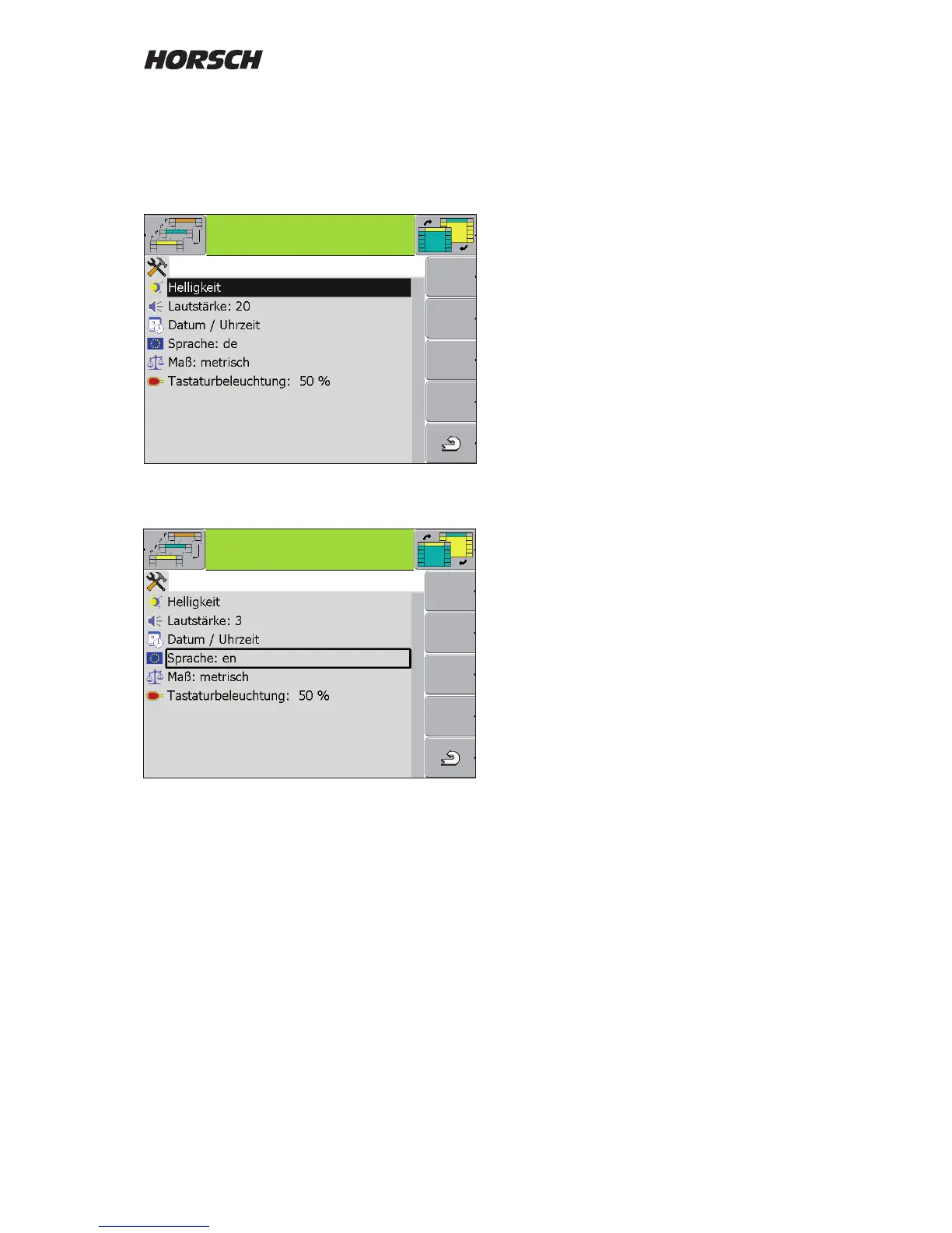 e.g. language selection