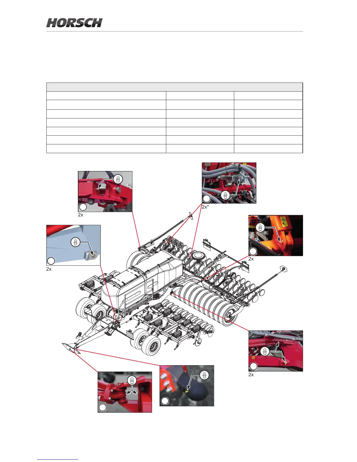Two-point hitching - rotation and hinged bearing (E) lubricate (2) 40 h / after pressure cleaning