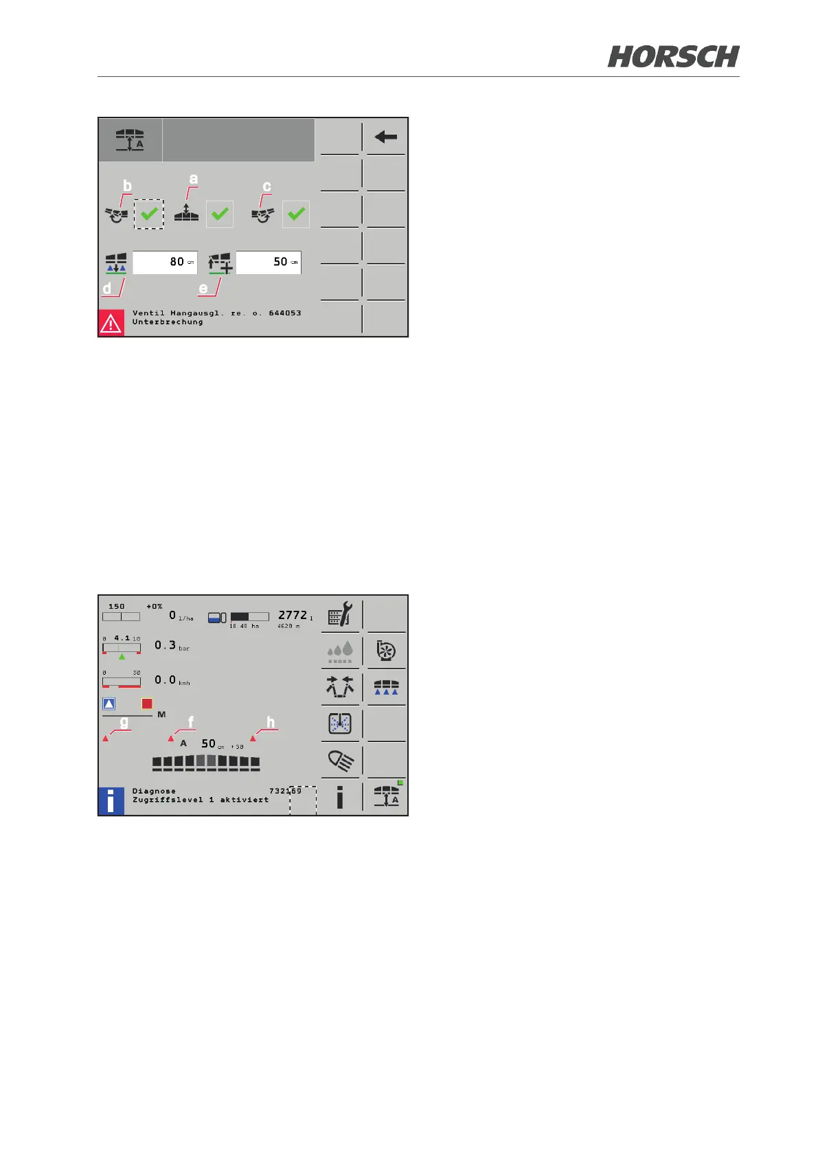 Example: If the spraying height is set to