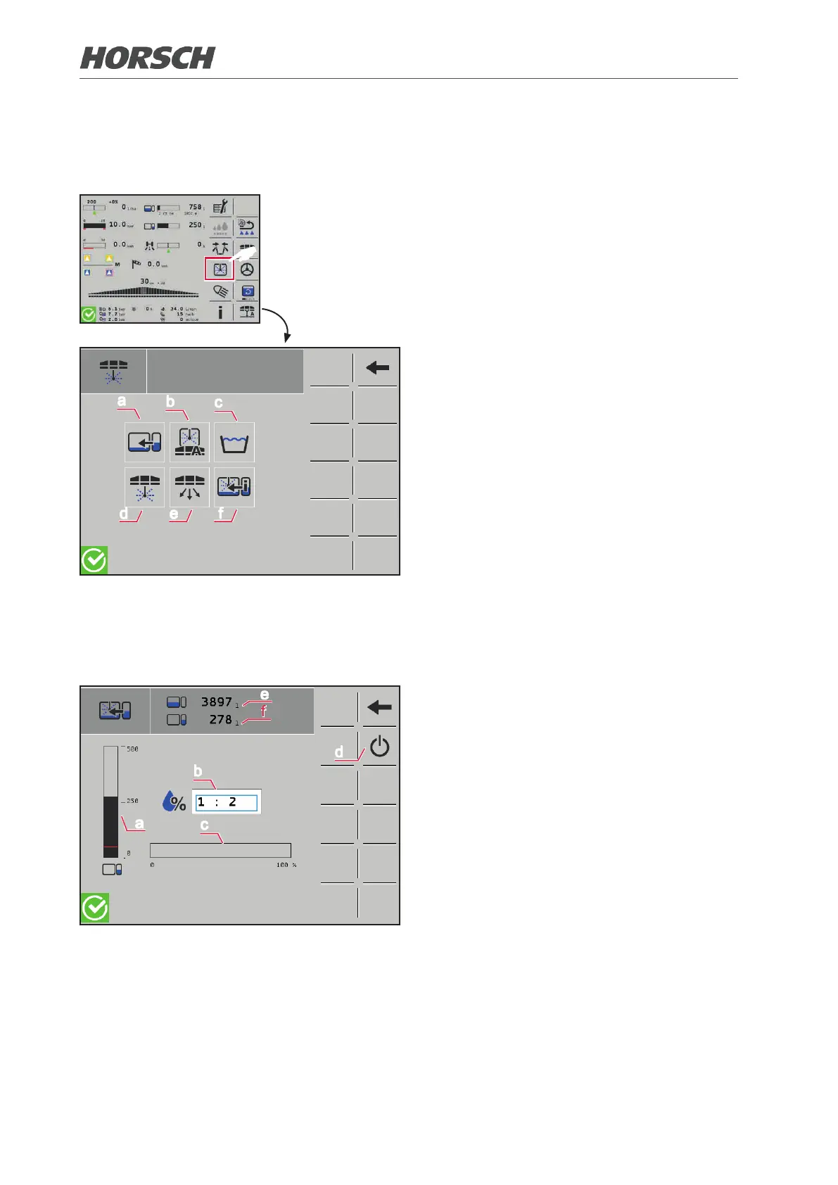 (e) Filling level spraying mixture container