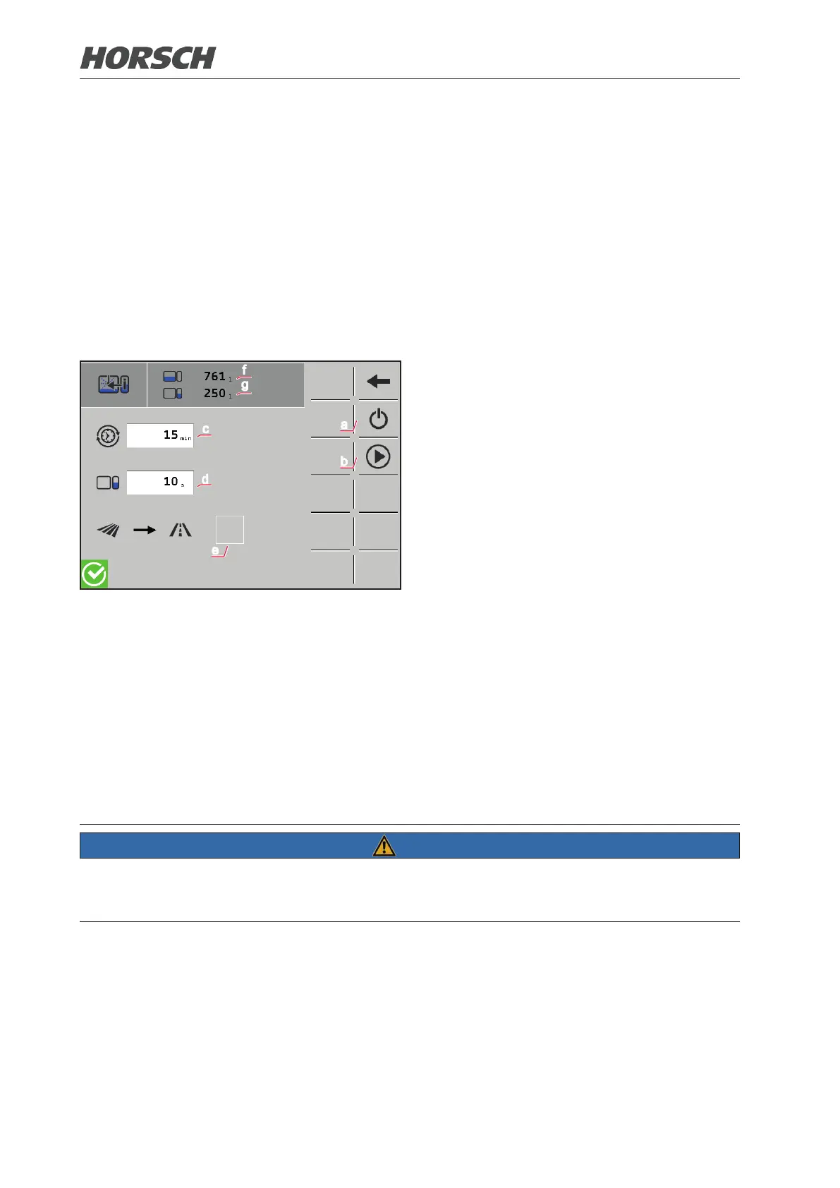 The function remains active until the spraying mixture container or the fresh water tank (below the
