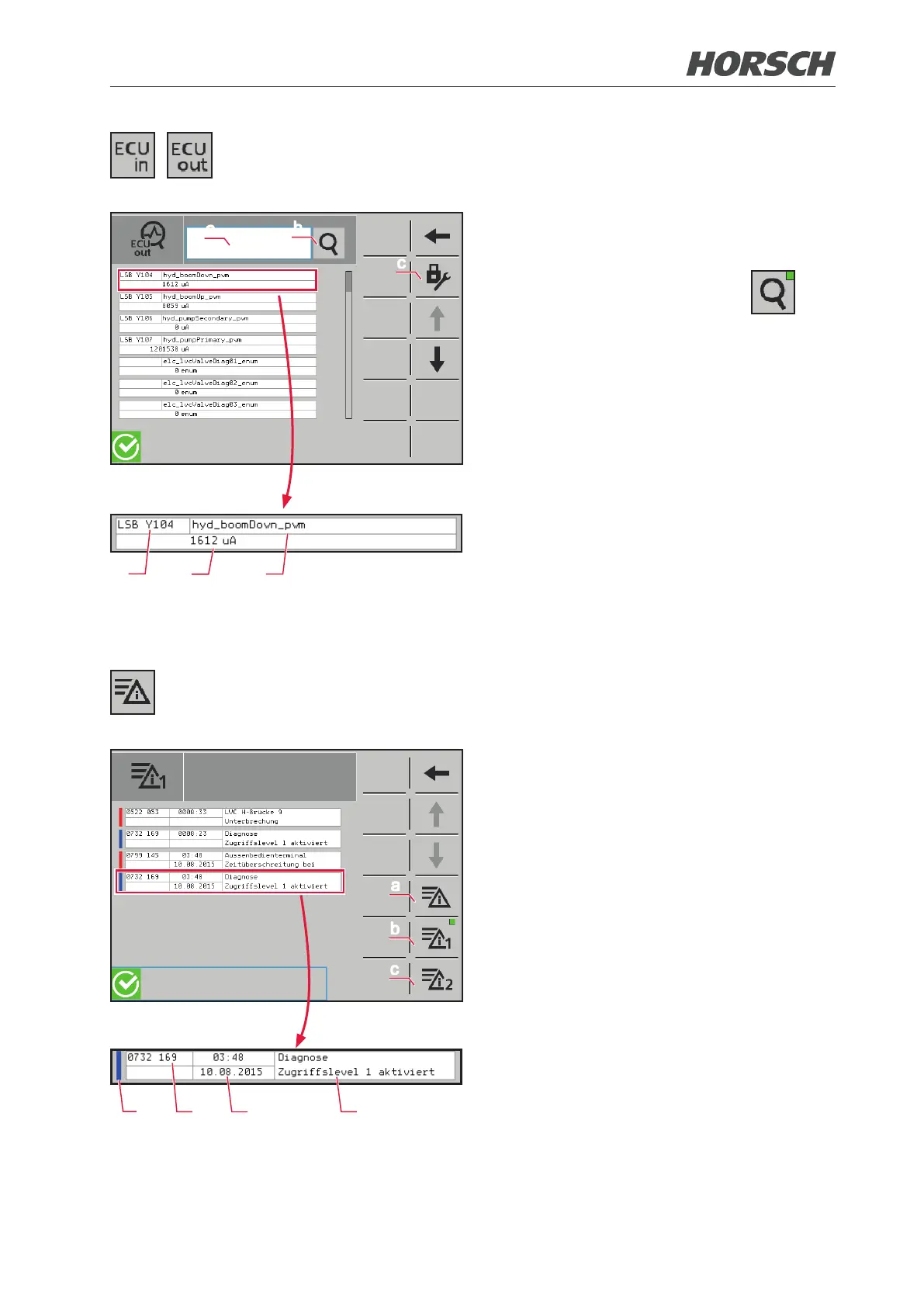 message, red = alarm, blue = notes)
