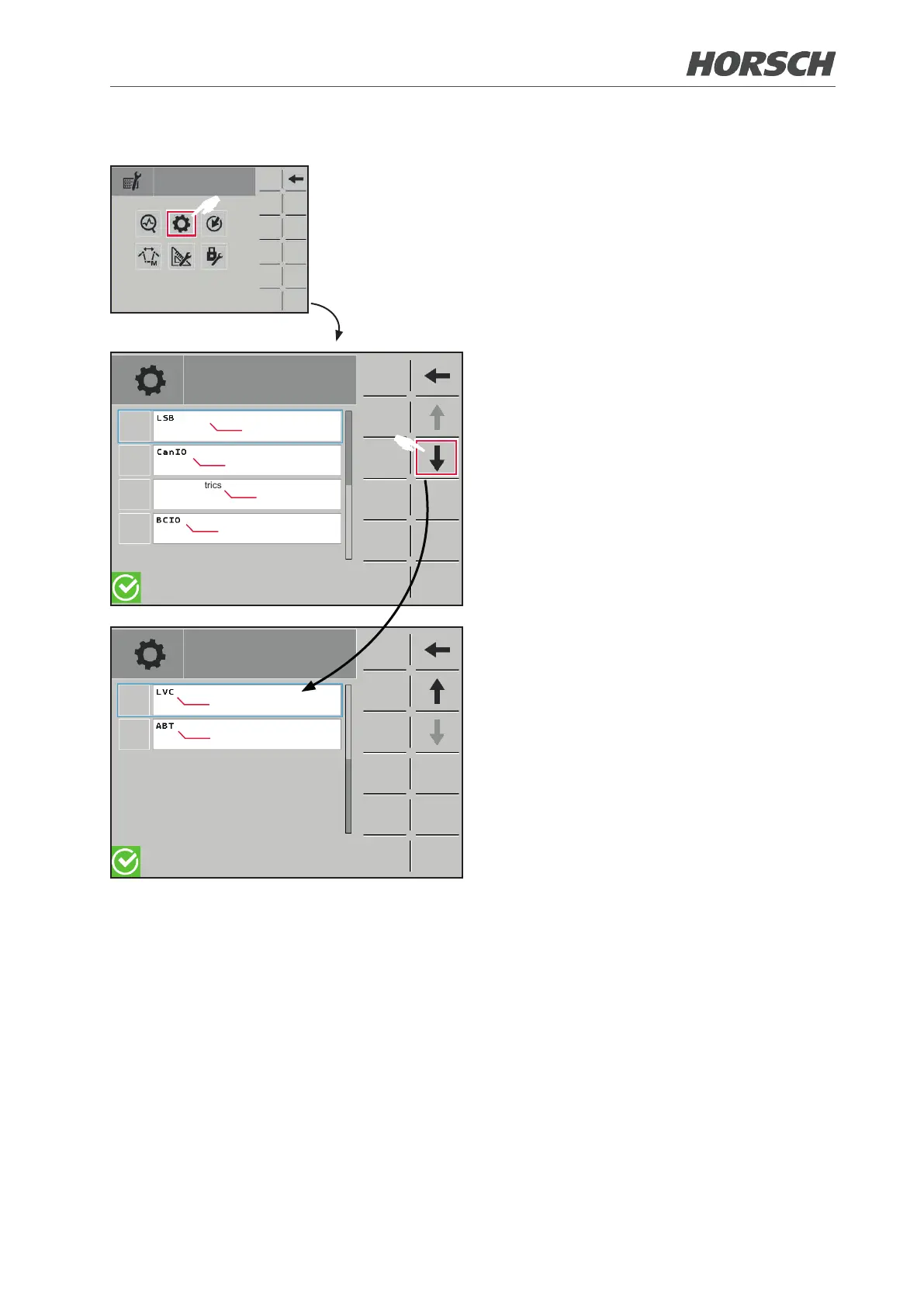 ¾ The submenus of the settings all follow the same layout (see example of sprayer design control