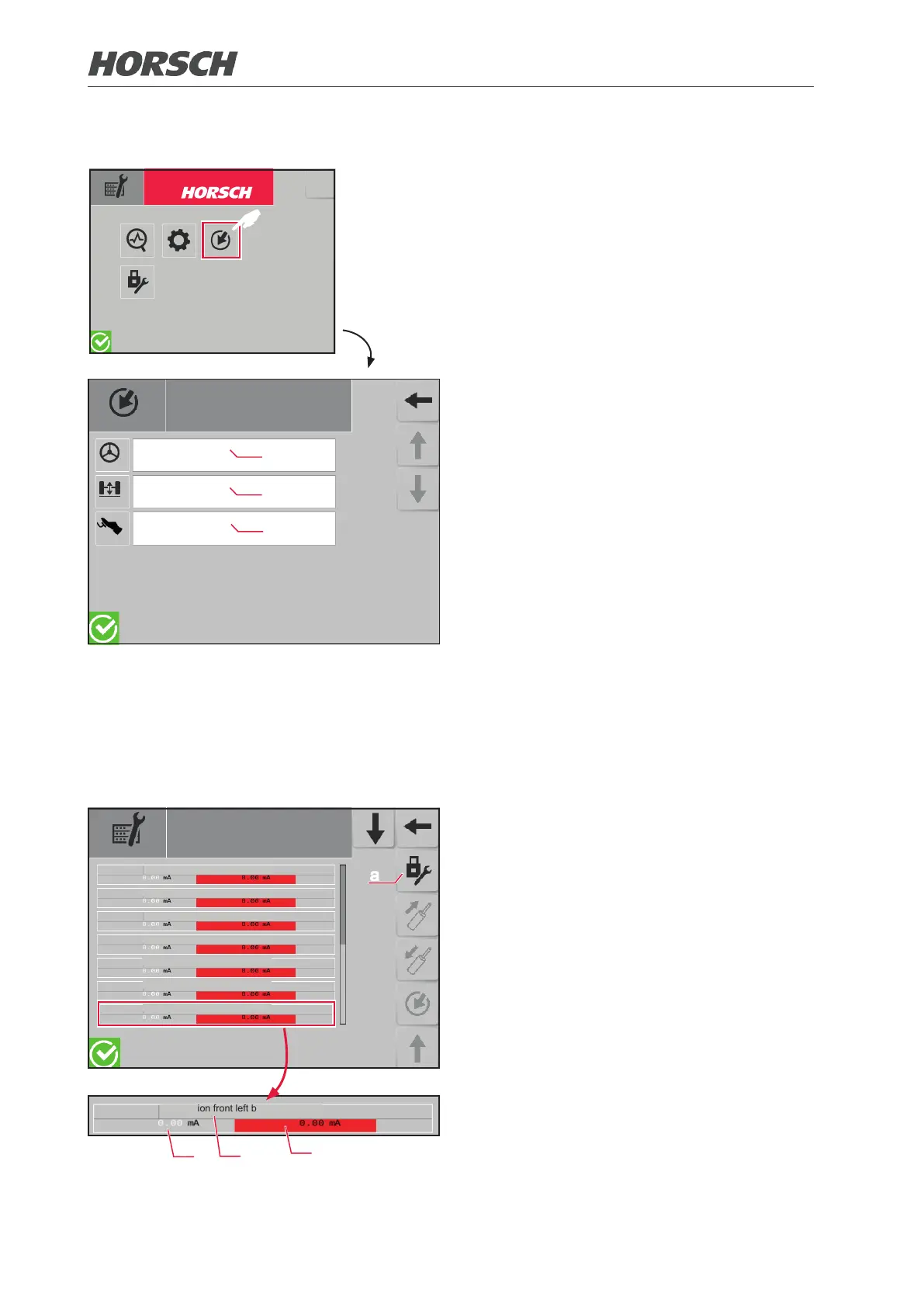 ¾ The submenus of the teach mode all follow the same layout (see example of undercarriage