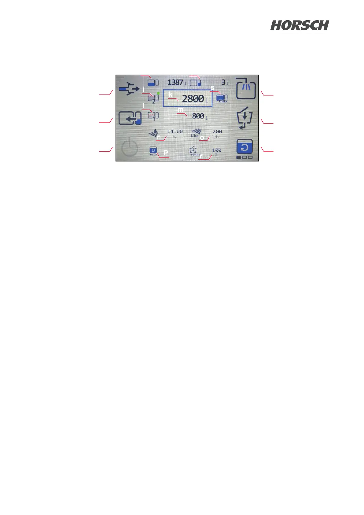 (h) Display of the current lling level in the spraying mixture container.