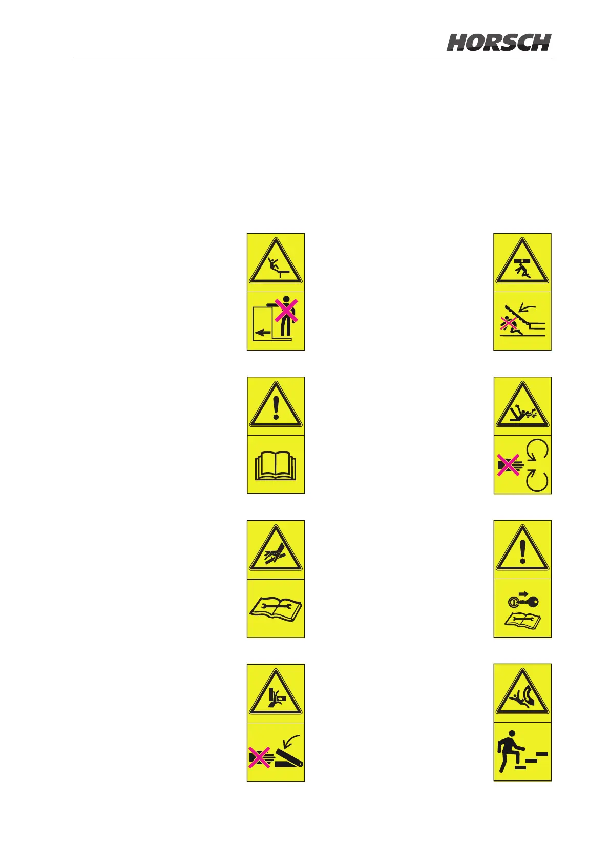 ¾ Damaged or illegible safety stickers must be