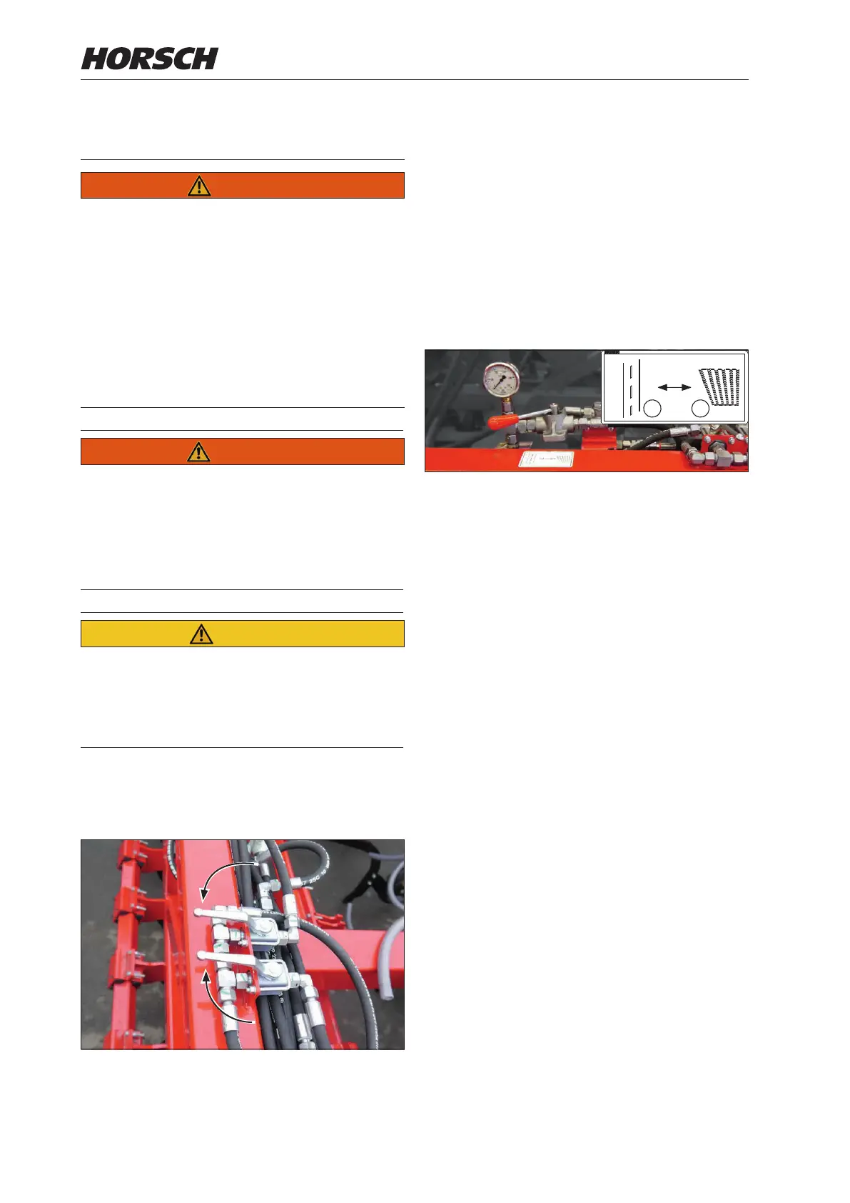 ¾ To secure the folding hydraulics, close both