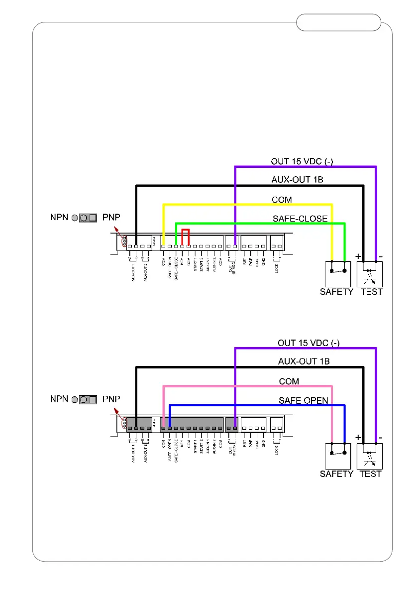 Connect opening and close safety sensors as below.