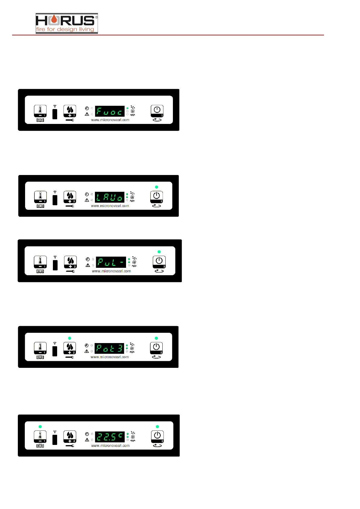 status ontsteking, wordt op het display de melding “Vuur Aanwezig” weergegeven en knippert de led ON\OFF.