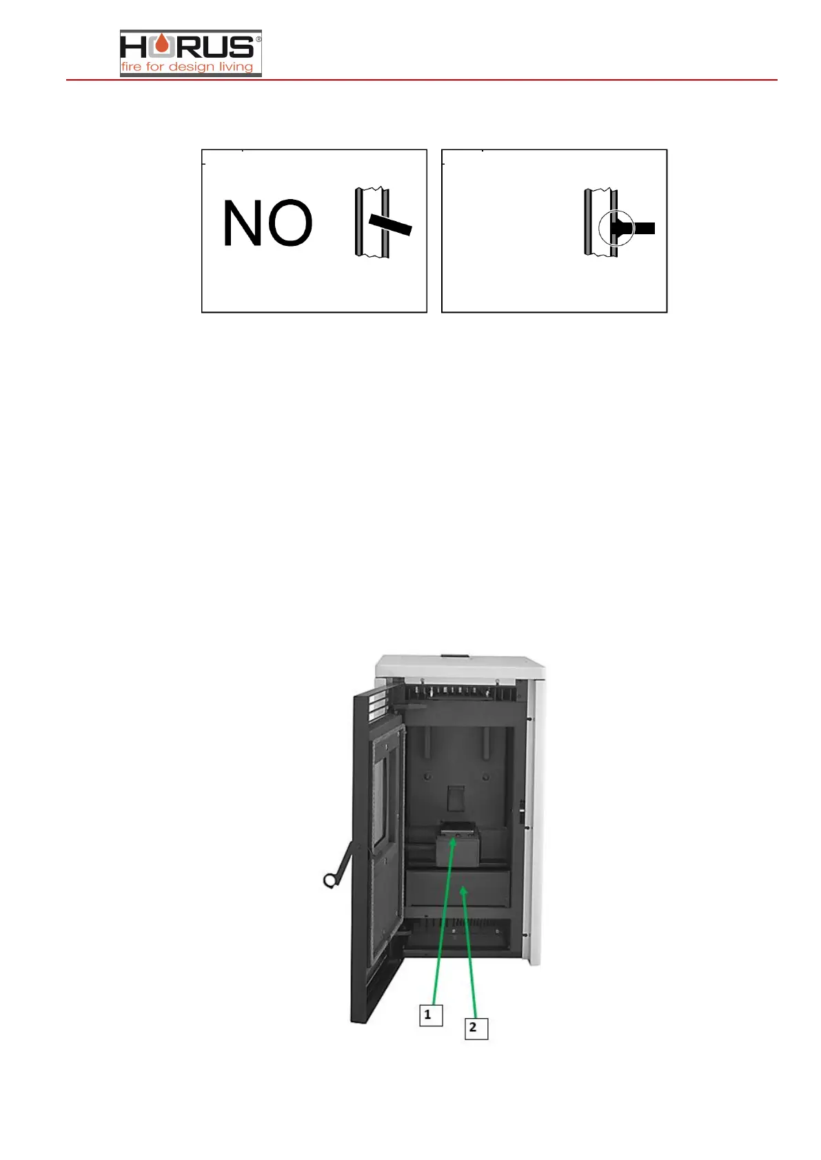 the hot parts in the device. In order to avoid the fire to go out, make sure that the level of pellets inside the tank remains constant. Make