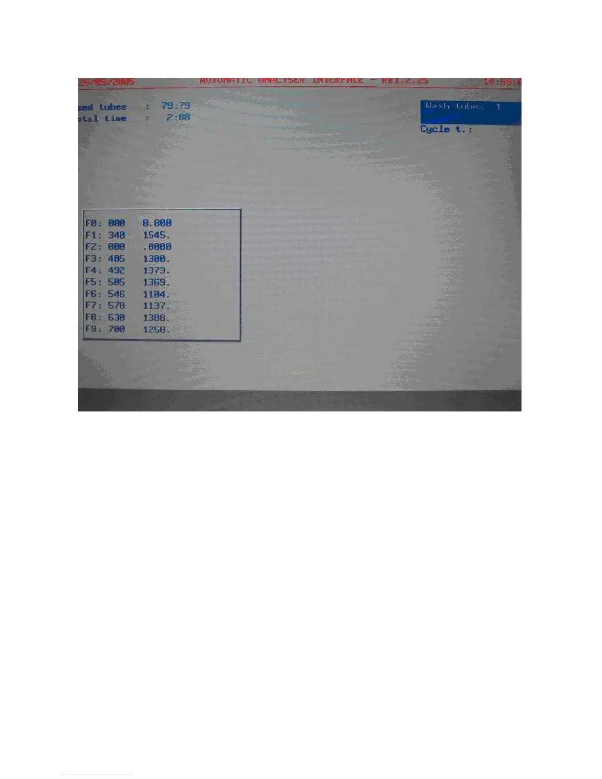 MAIN MENU’ > F5 SERVICE > F2 WASHINGS > F5 AUTOZERO ( MONOCUVETTE )