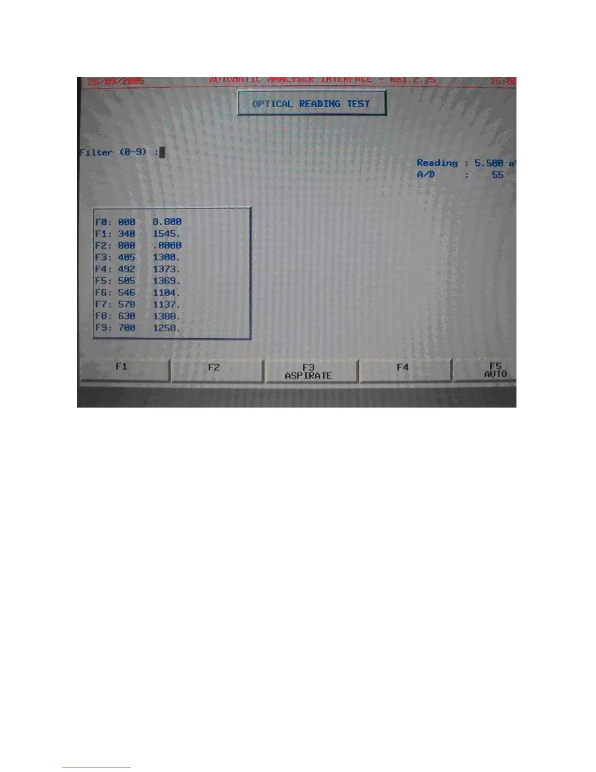 MAIN MENU’ > F5 SERVICE > F3 DIAGNOSTICS > F1 READING TEST ( MONOCUVETTE )