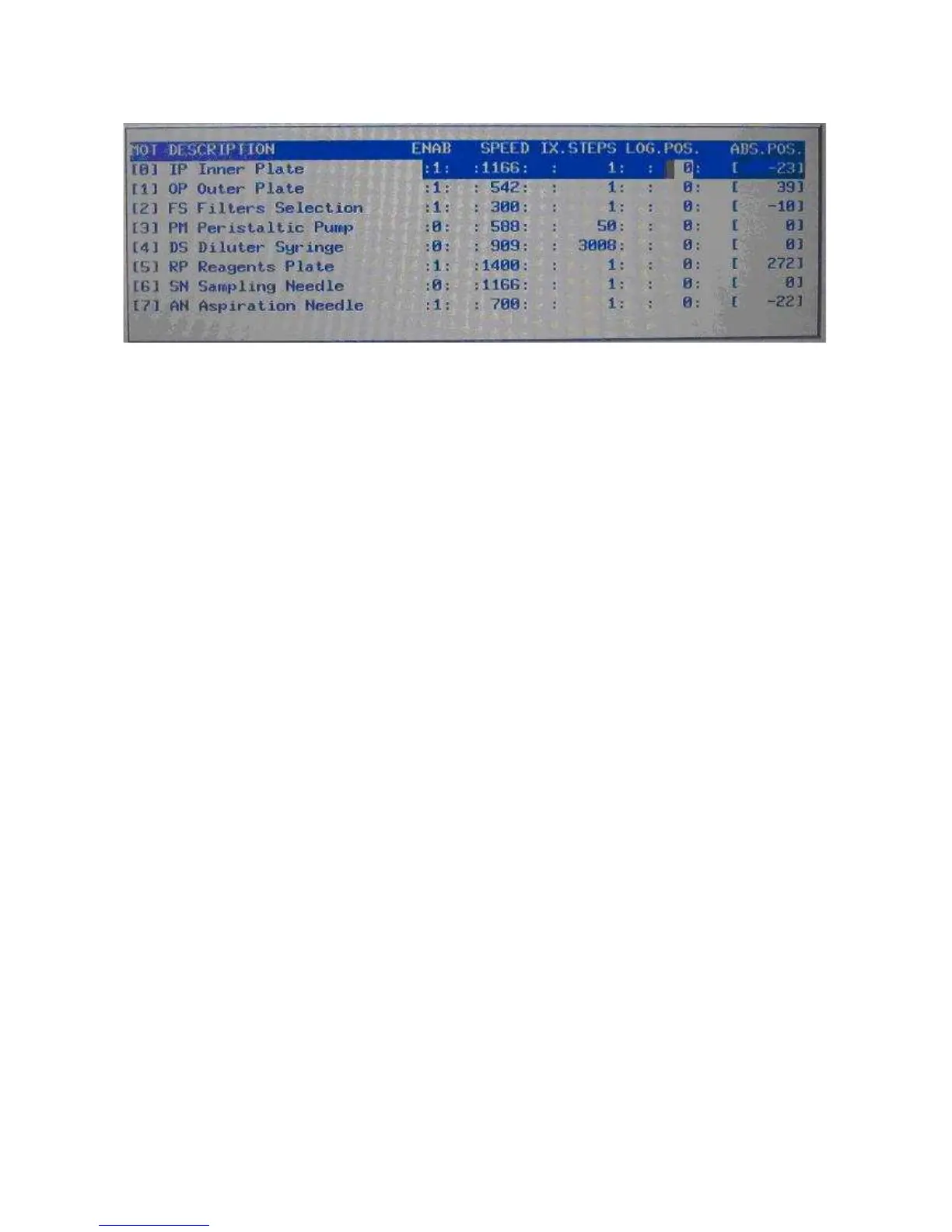 The logical position 8 sampling needle down in the bottom of the reagents