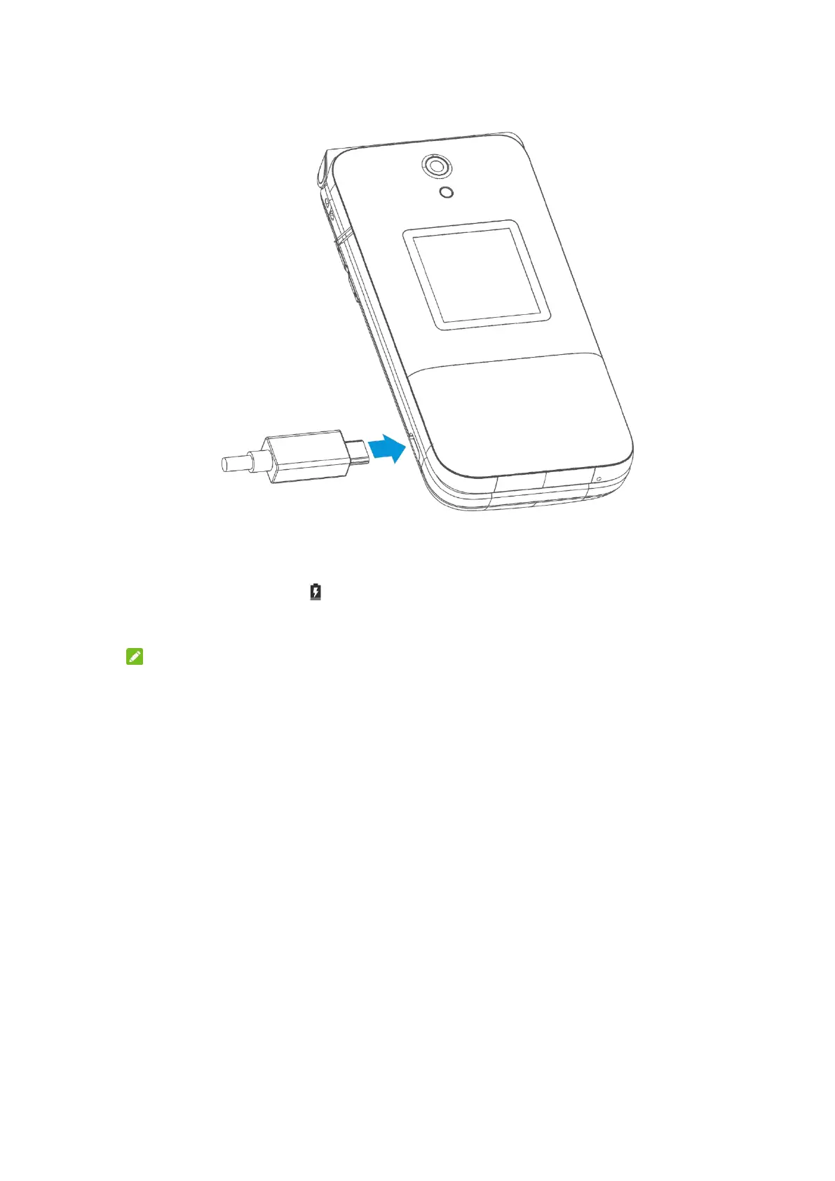 2. Connect the charger to a standard AC power outlet. If the phone is on, you’ll see a