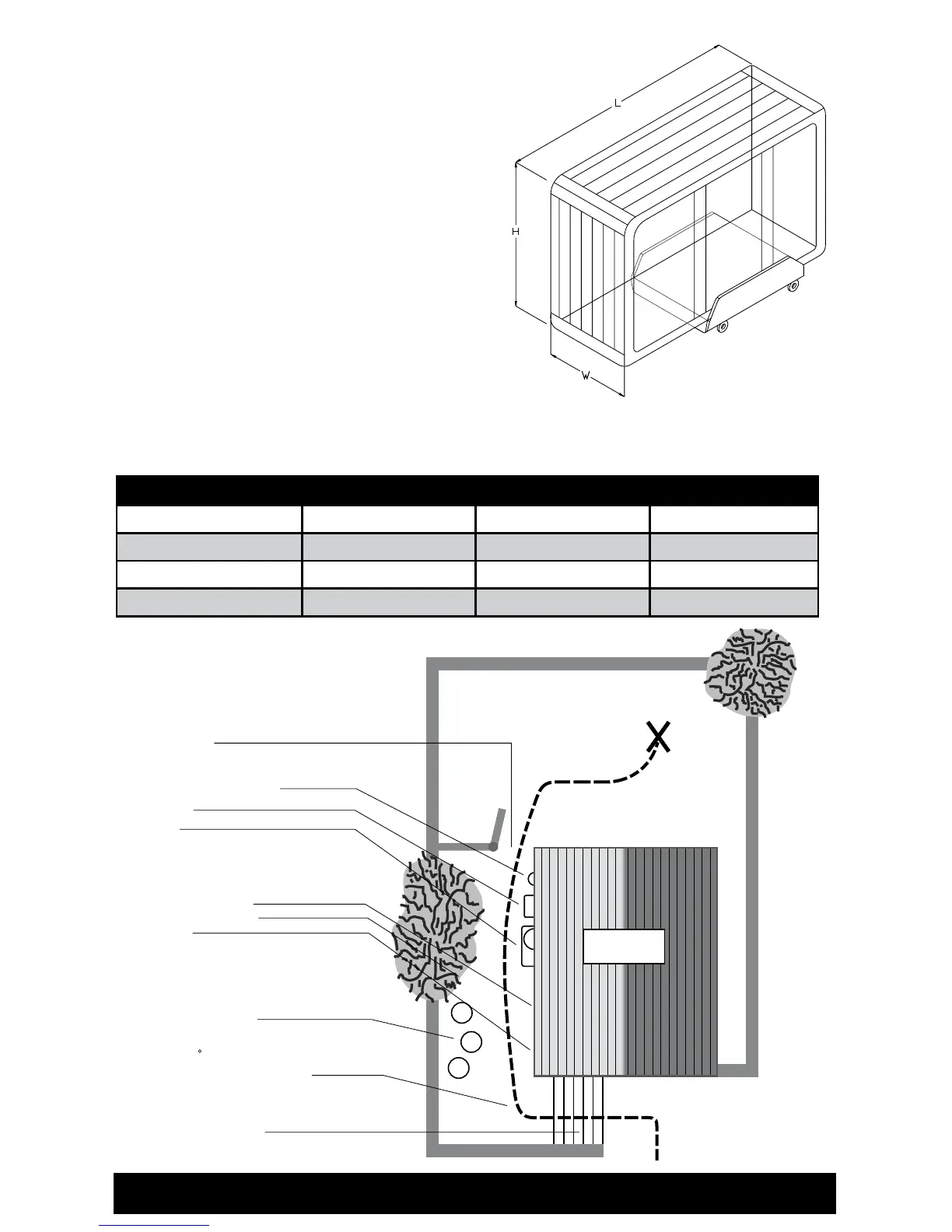 Model Width W Length L Height H