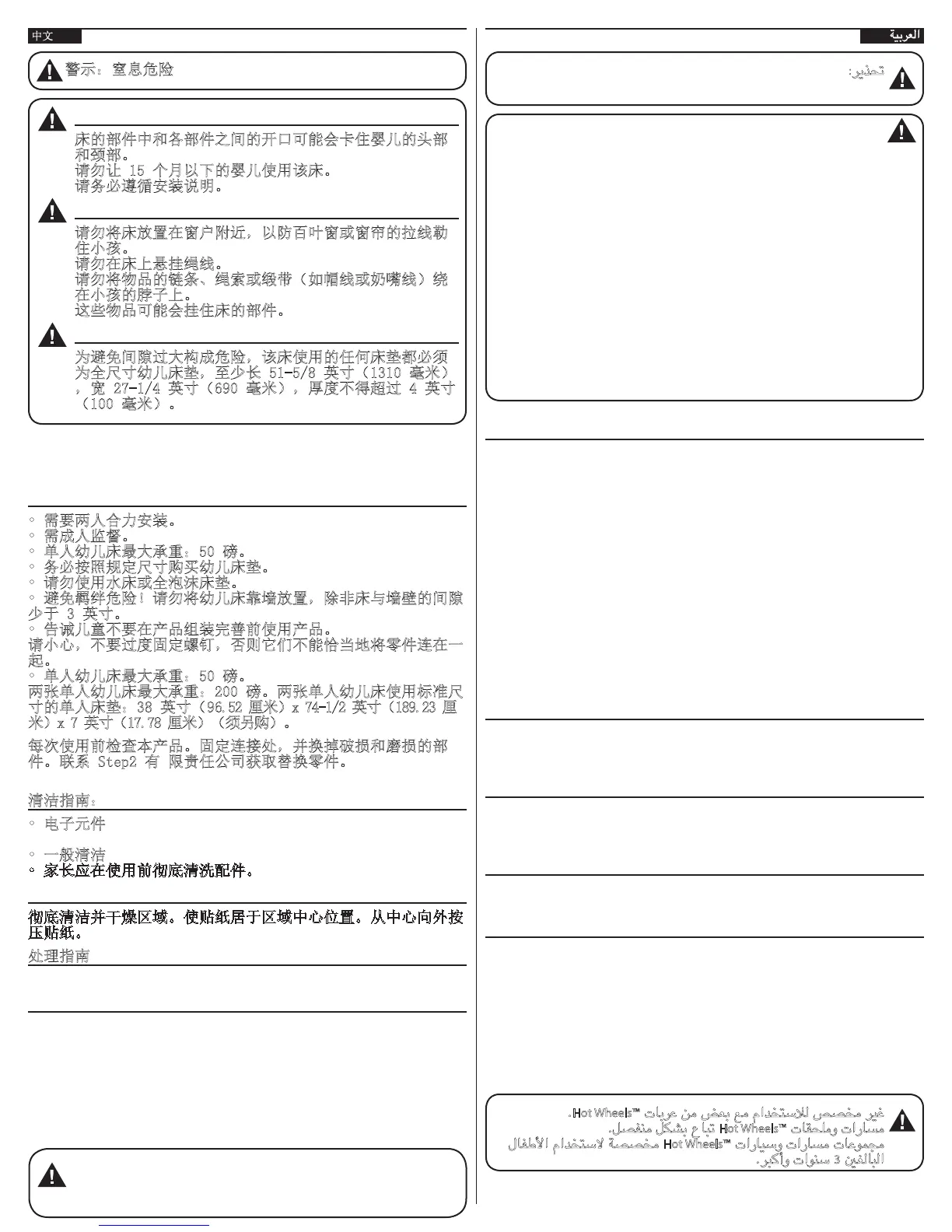 • 避免羁绊危险!请勿将幼儿床靠墙放置,除非床与墙壁的间隙