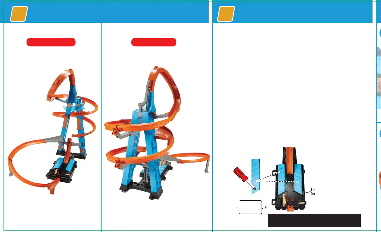 FOLLOW THE STEPS BELOW TO FOLD TRACK PIECES AND TAKE THE TOWER ON THE GO! • ¡SIGUE LOS PASOS A CONTINUACIÓN PARA PLEGAR LAS PIEZAS DE PISTA Y LLEVAR LA TORRE A TODAS
