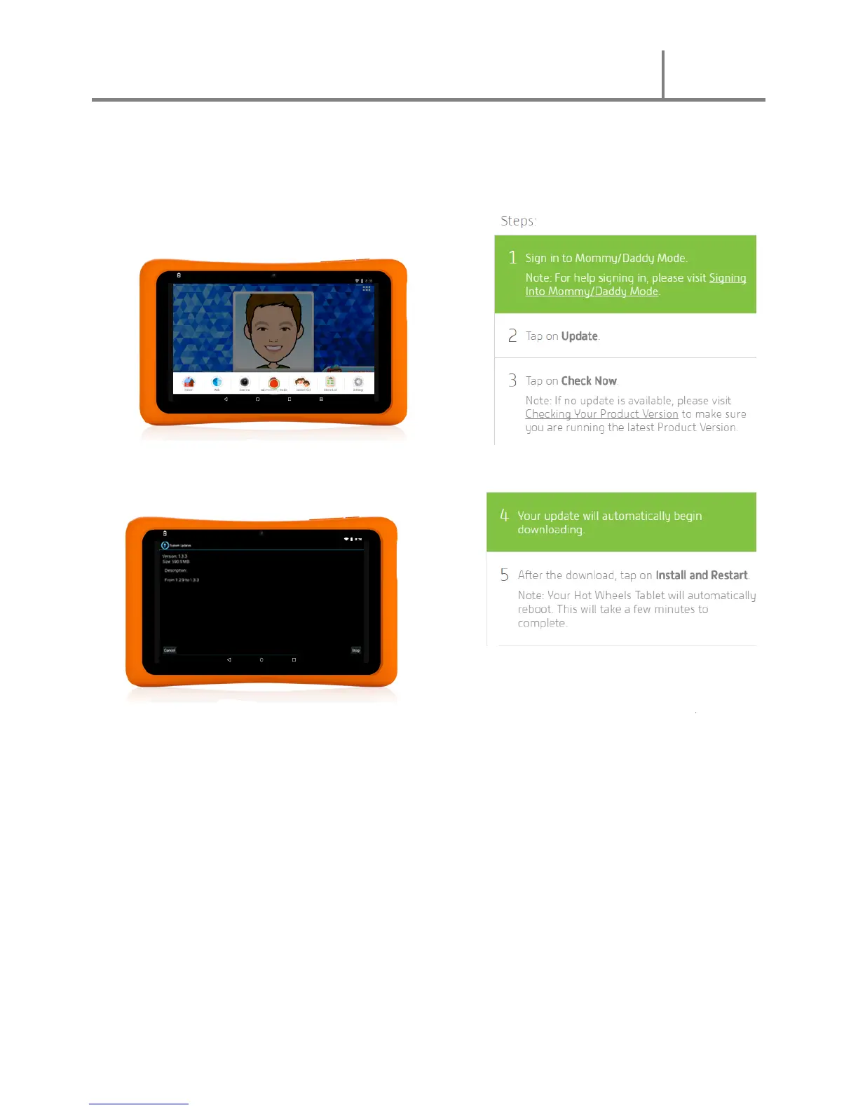 the latest software by following the steps in updating your Hot Wheels Tablet.