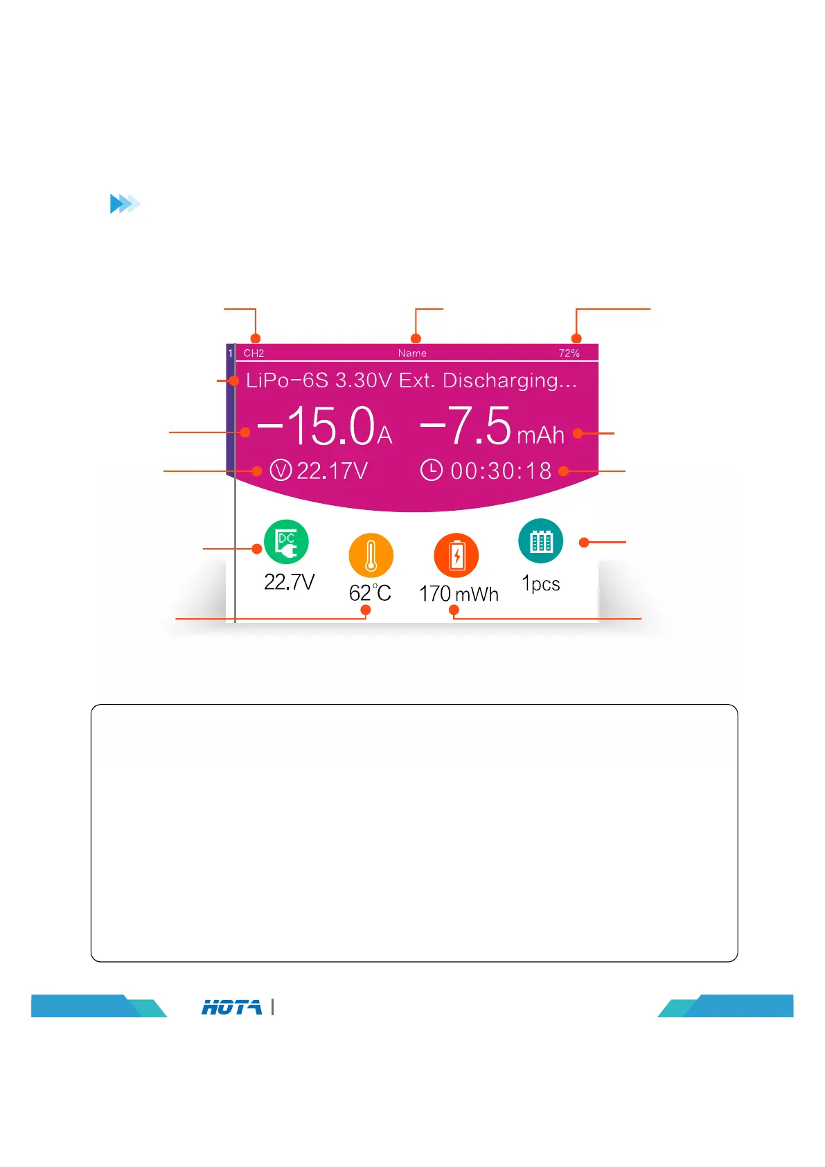 “Adjust Task”menu,will adjust the Ext. discharge current,long press the CH key can