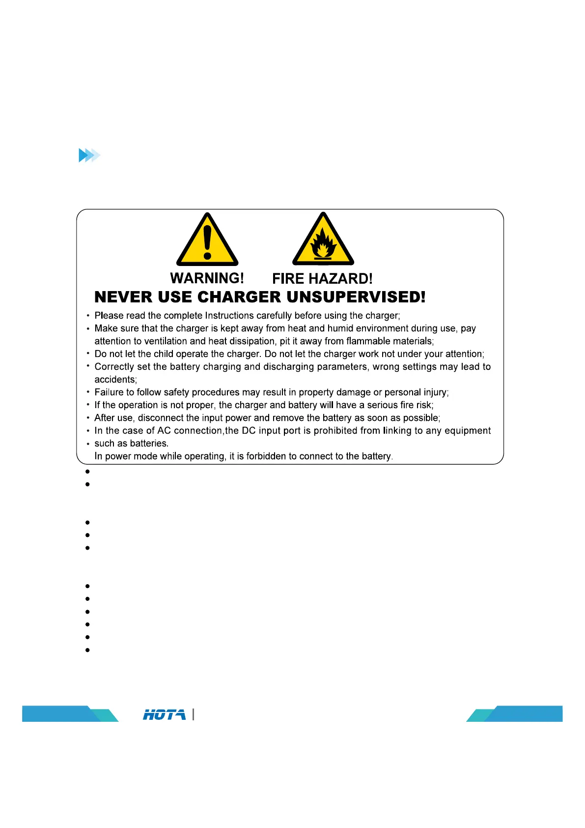 Do not place the charger or battery near flammable objects during use. Do not charge or discharge