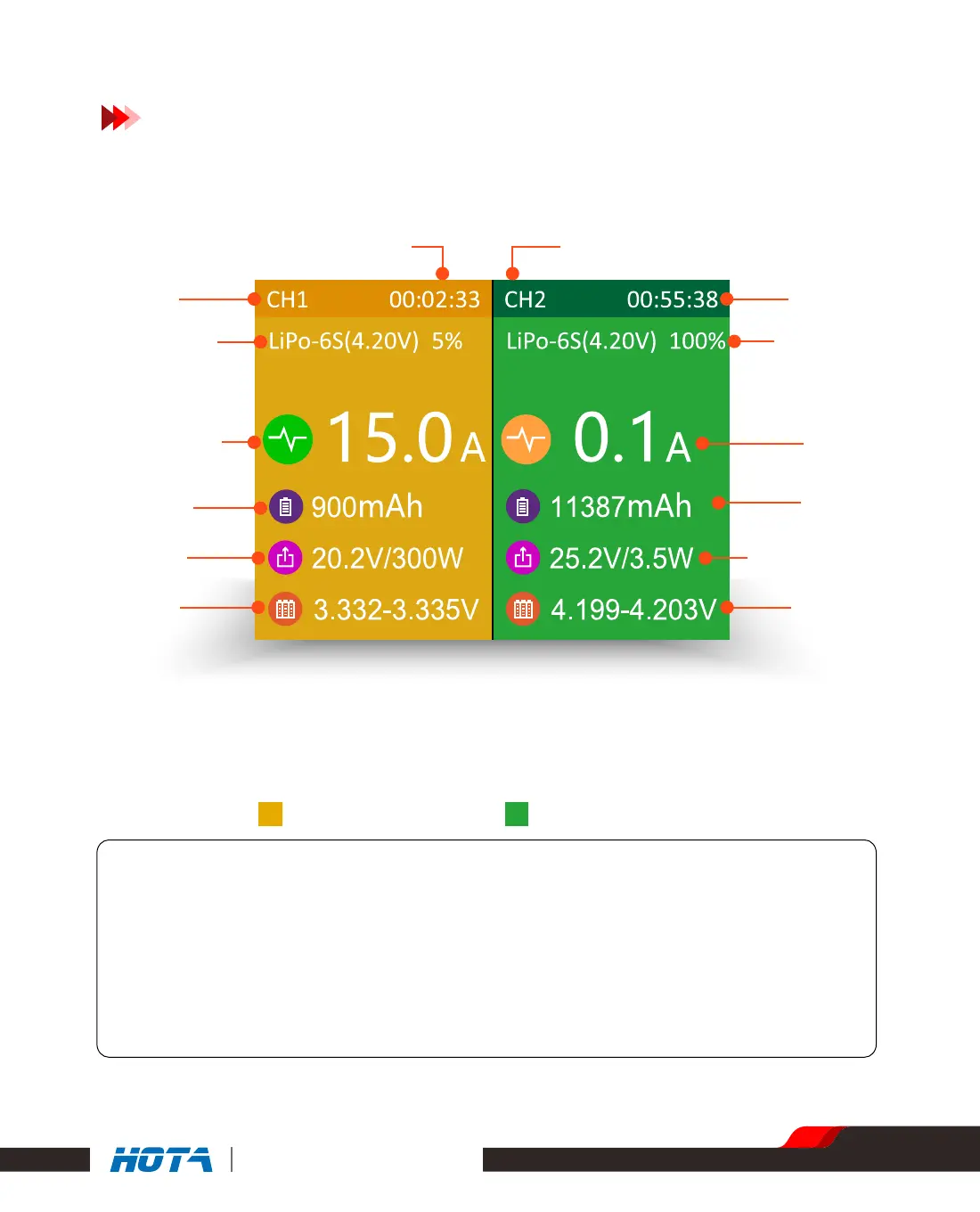 Channel 1 : charging Channel 2 : Charging completed