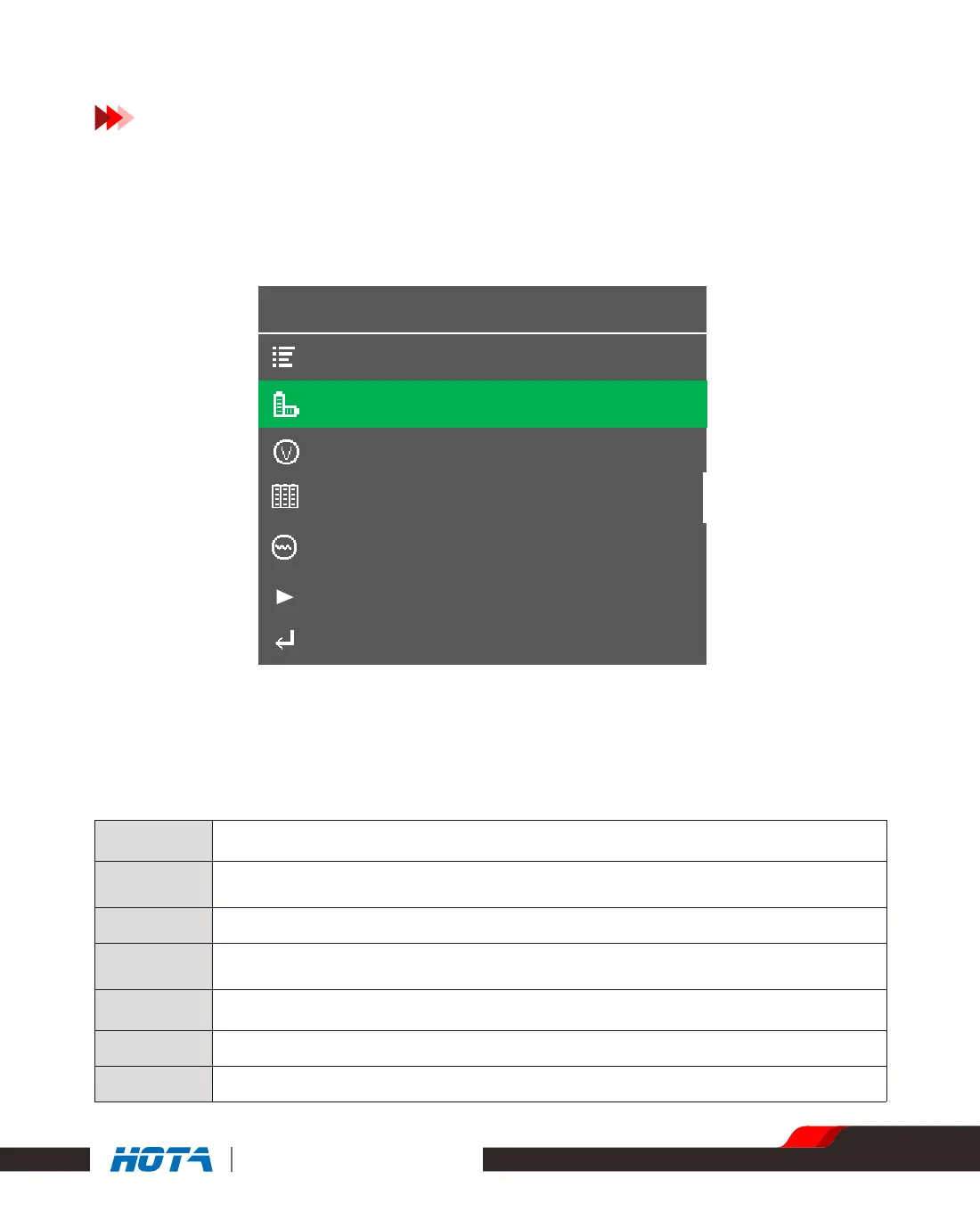 Select battery's strings: 1~6S ; if balance port is inserted, it is automatically tested, no
