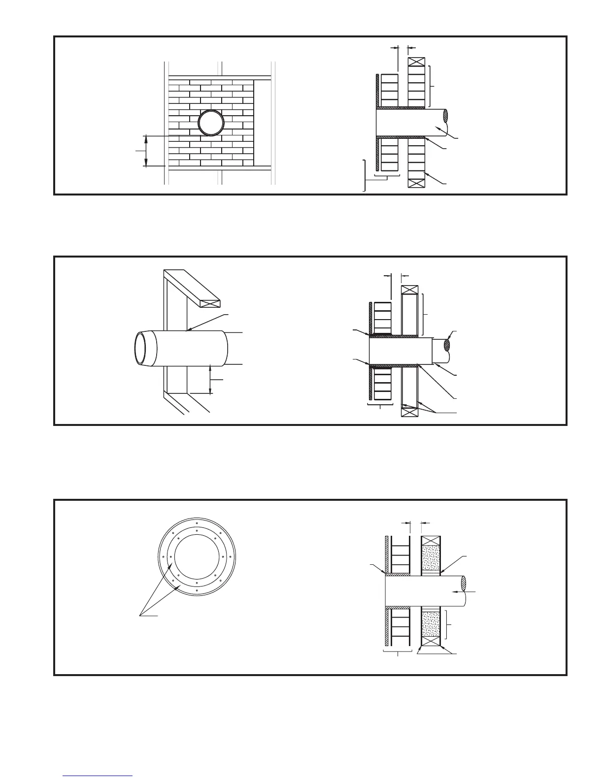 must be separated from combustible materials by a minimum of 6" glass ber insulation. The opening in the combustible wall shall