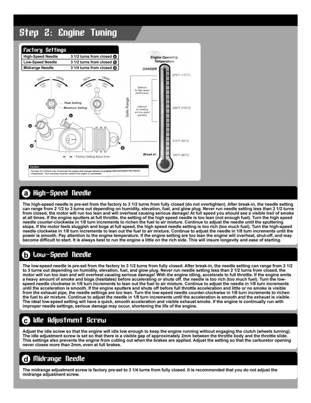 Hotbodies Lightning 2 - Engine Tuning; High-Speed Needle Adjustment; Low-Speed Needle Adjustment; Idle Speed Adjustment