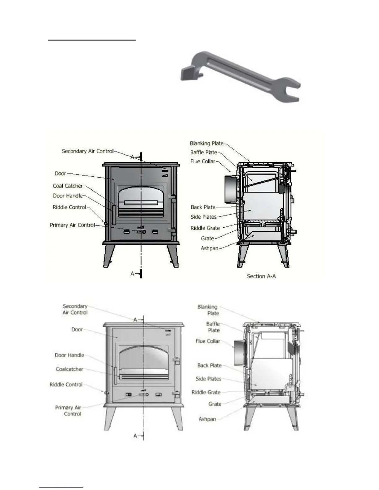 Fig 3 – HH6SE and HH8SE Stove assembly and controls