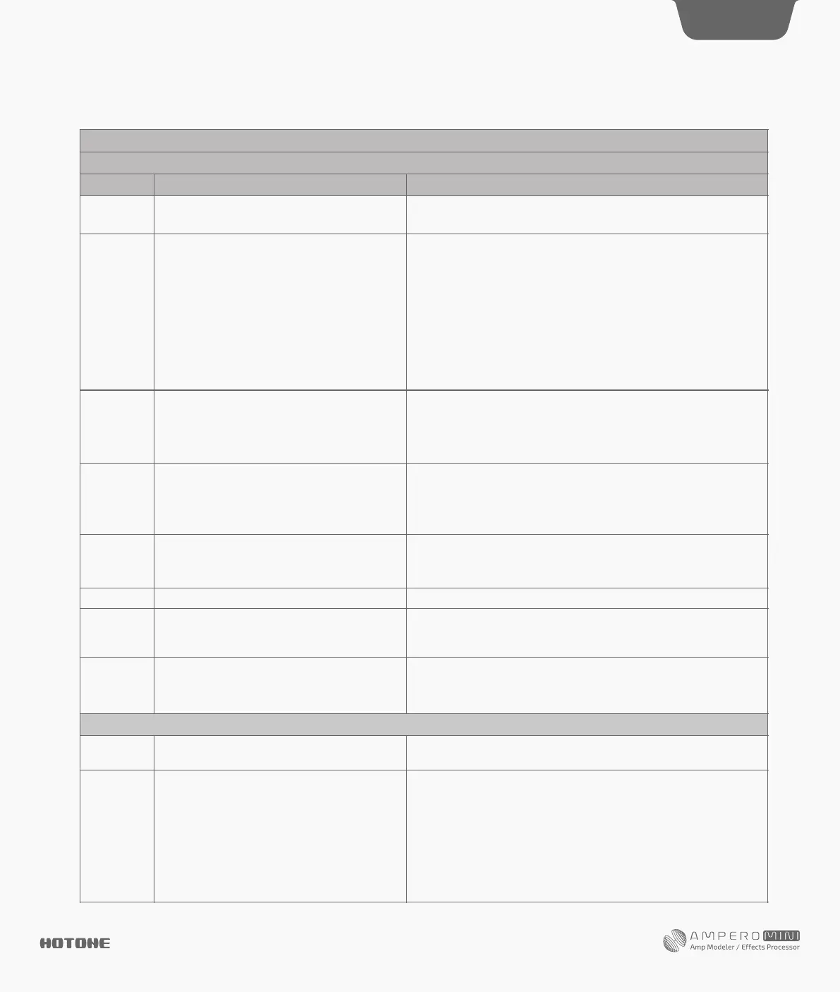 Gate Controls the noise gate threshold(0~100)