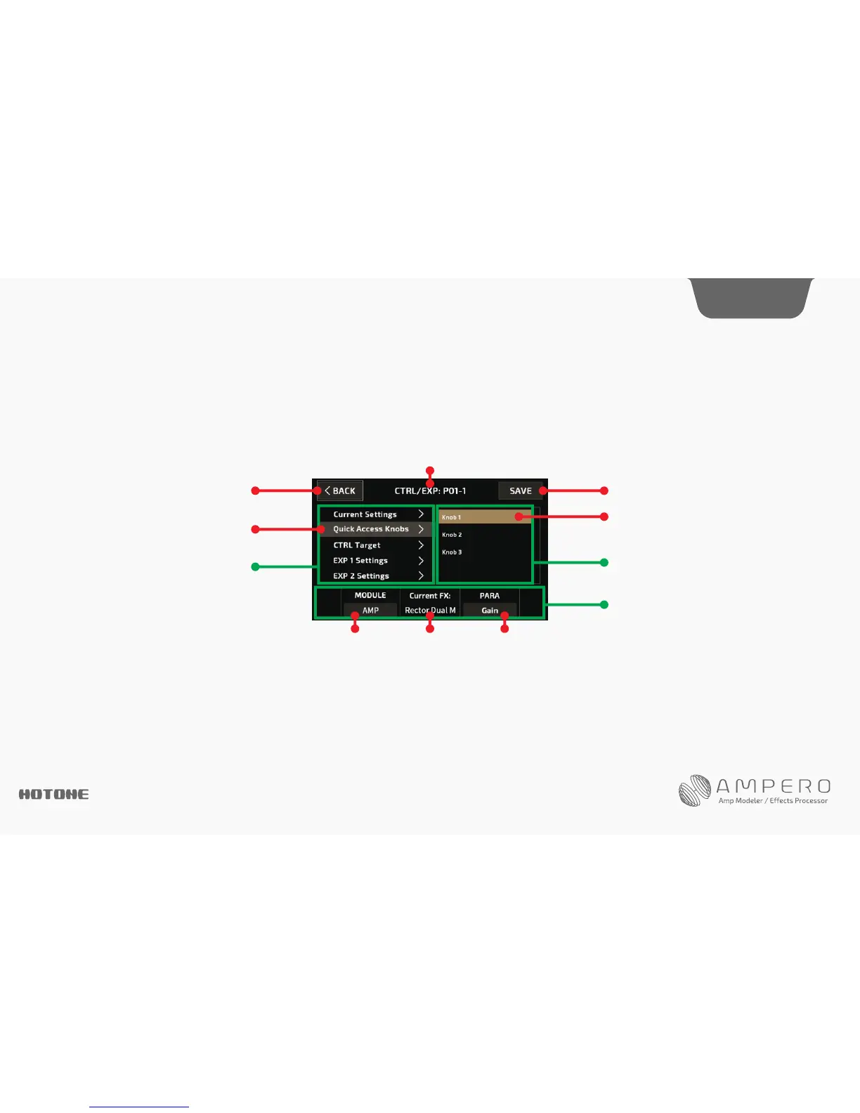Remember that all the control settings will change as you change patches. If you switch patches or turn Ampero off before saving your changes, the changes will be