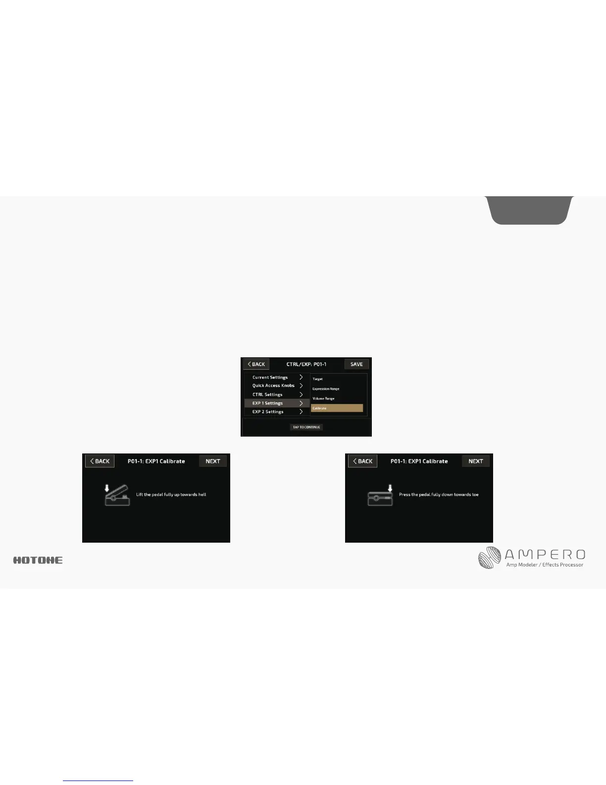 The Calibrate option helps you calibrate your expression pedal. It is important to calibrate the expression pedal if you find the sweep has very little or too much change