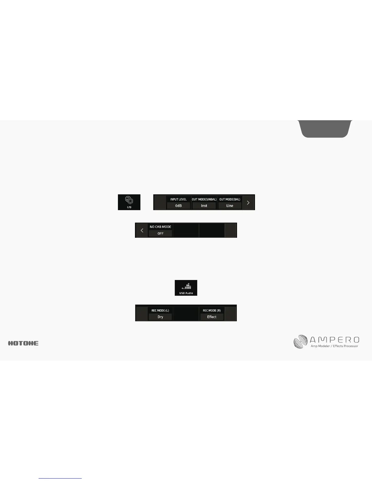 No Cab Mode is for connecting to instrument amplifiers without changing saved presets. Turn this on will bypass CAB module for Ampero’s all outputs ignoring preset