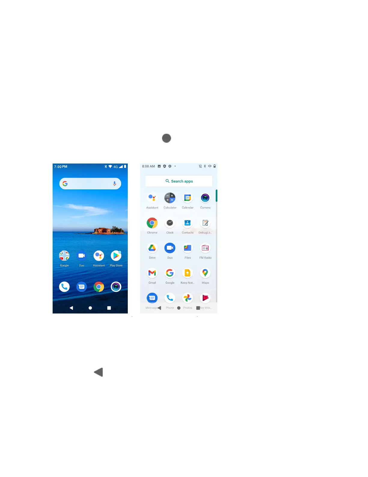 Tap icons, onscreen keys, and other items to open or activate the assigned function.