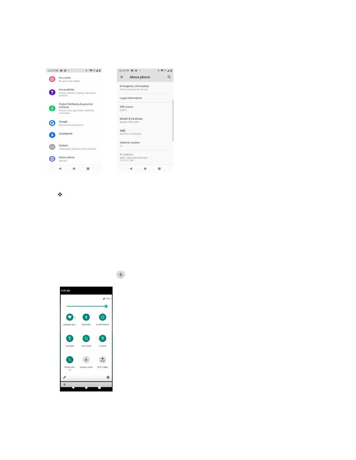 To turn on airplane mode: