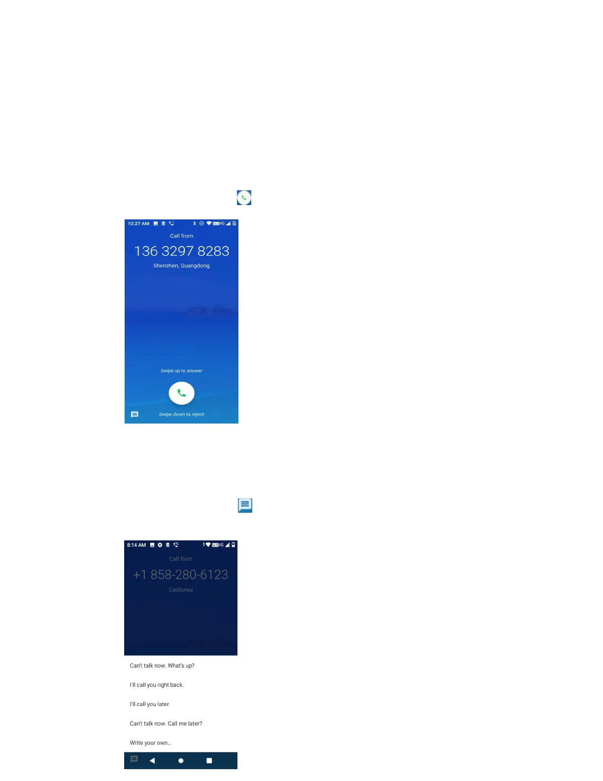 Reject a Call and Send a Text Message