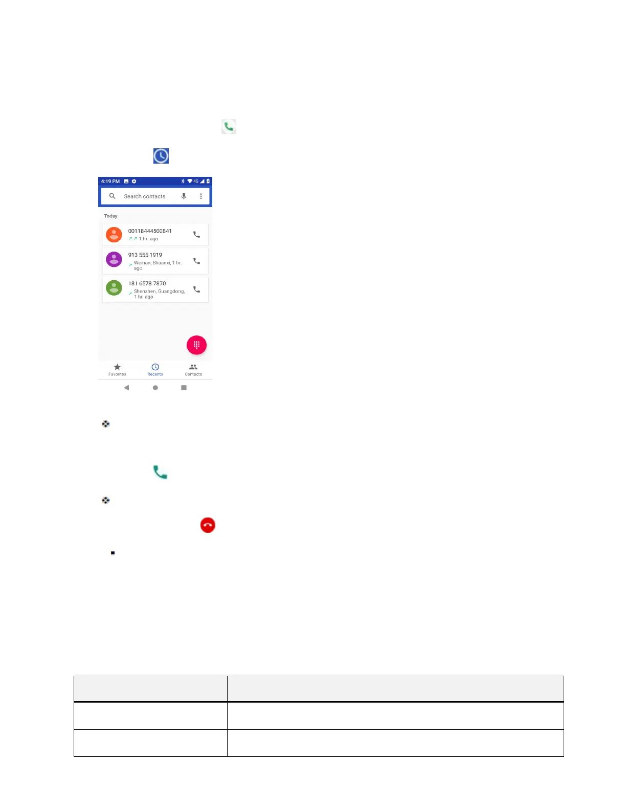 The call log list lets you quickly place calls to recent incoming, outgoing, or missed numbers.