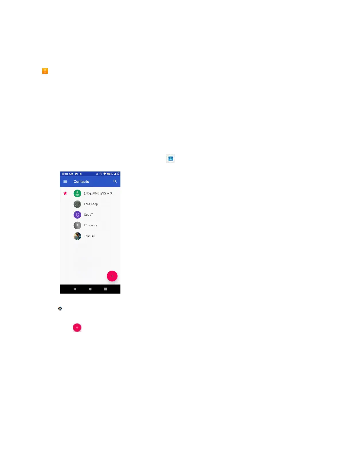 contacts you enter and save directly in your phone as well as contacts synchronized with your Google