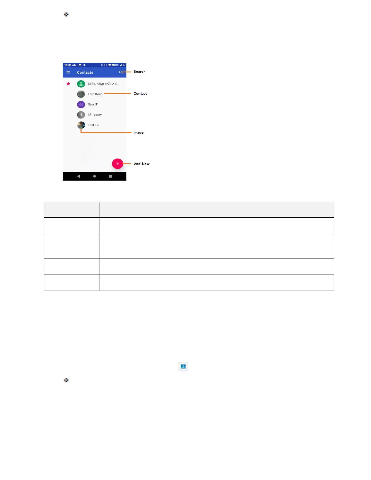 Contacts Screen Layout