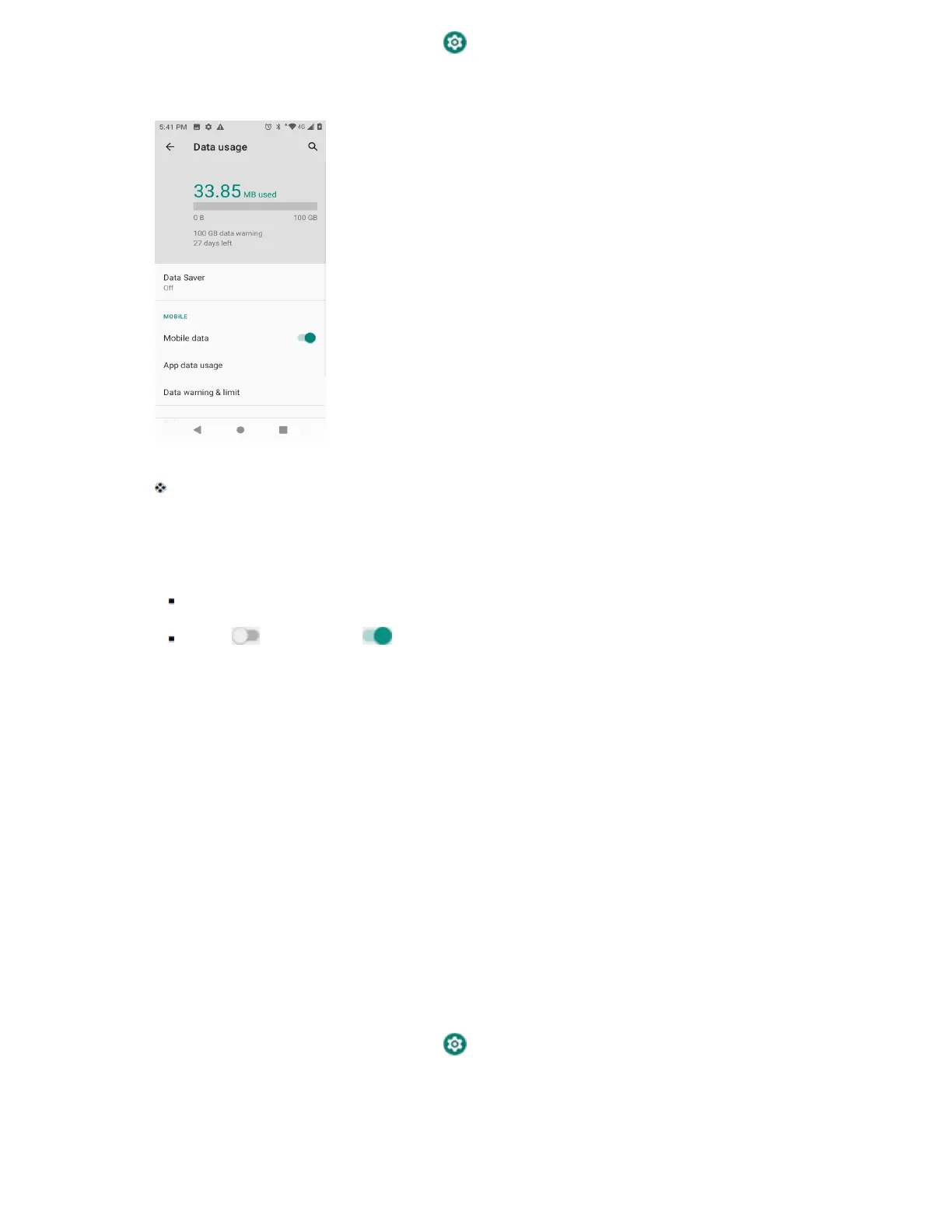 ● Enable Mobile Data: In Data usage window, tap the slider for Mobile data to enable the service.
