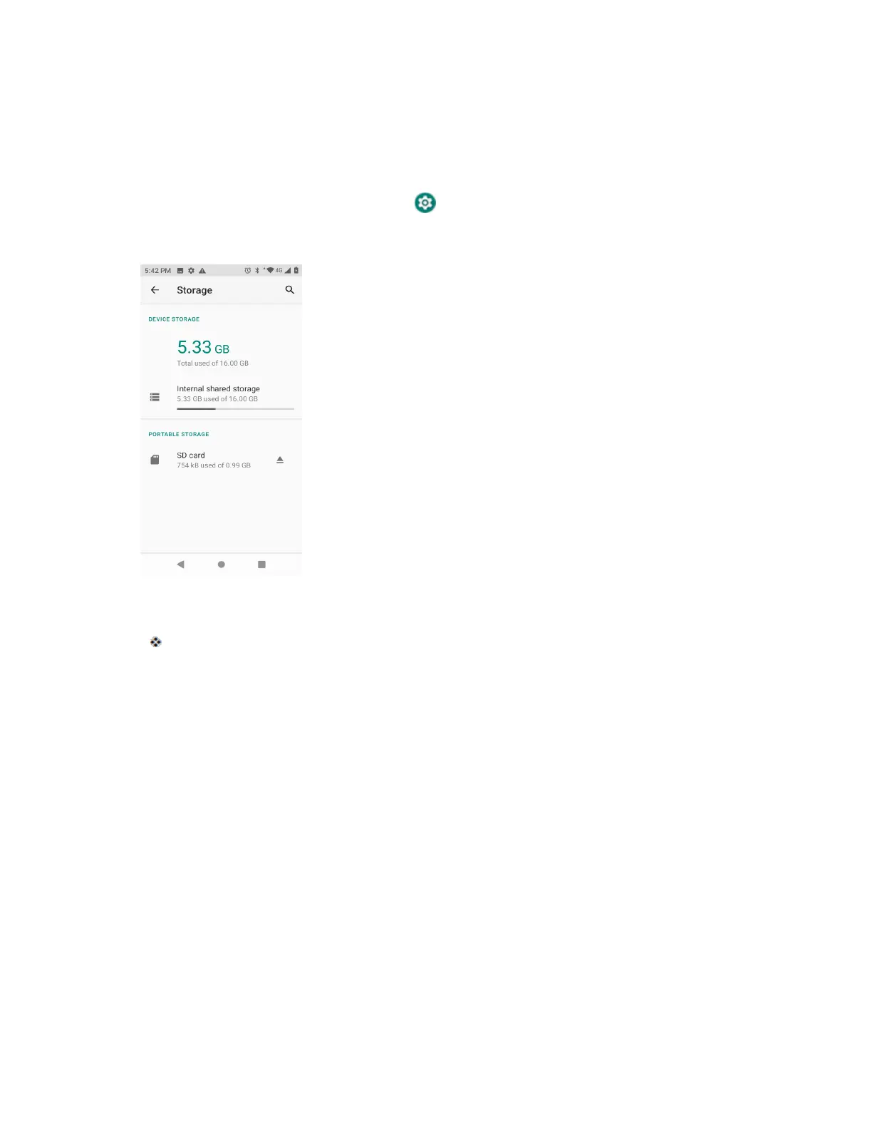 The storage settings menu lets you manage internal storage on your phone and provides menu