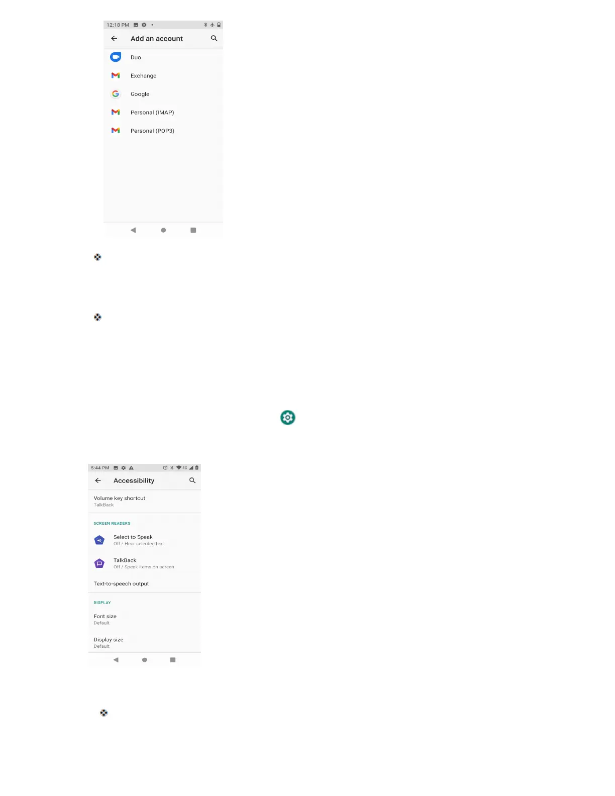 3. Tap an account type and then follow the onscreen instructions to add the required account