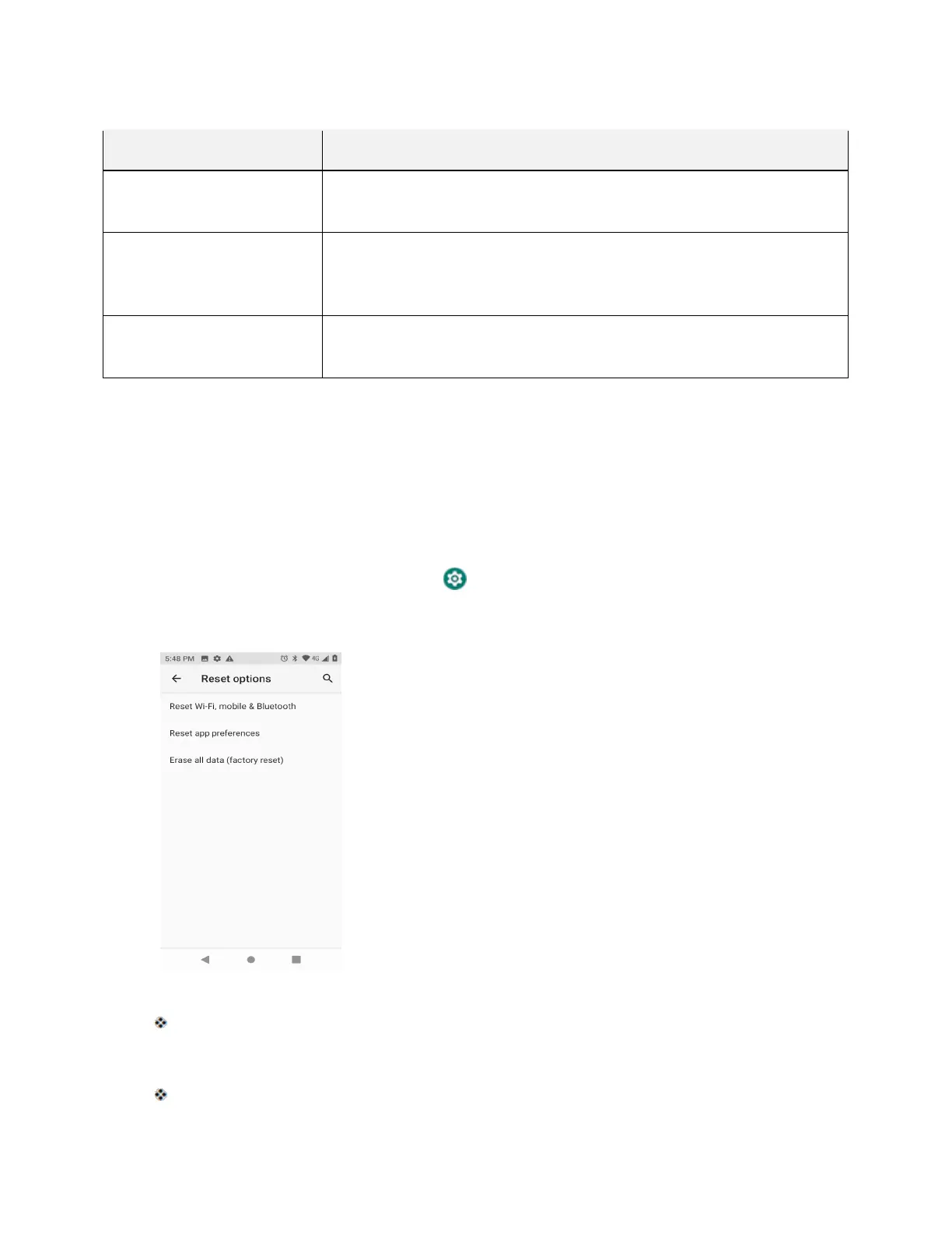 ● Performing a factory data reset erases all data on the phone. It is recommended that you back up