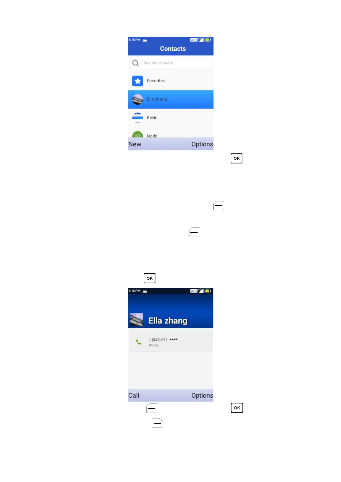 On the Contacts screen, use the Navigation Key to select a Contact, then