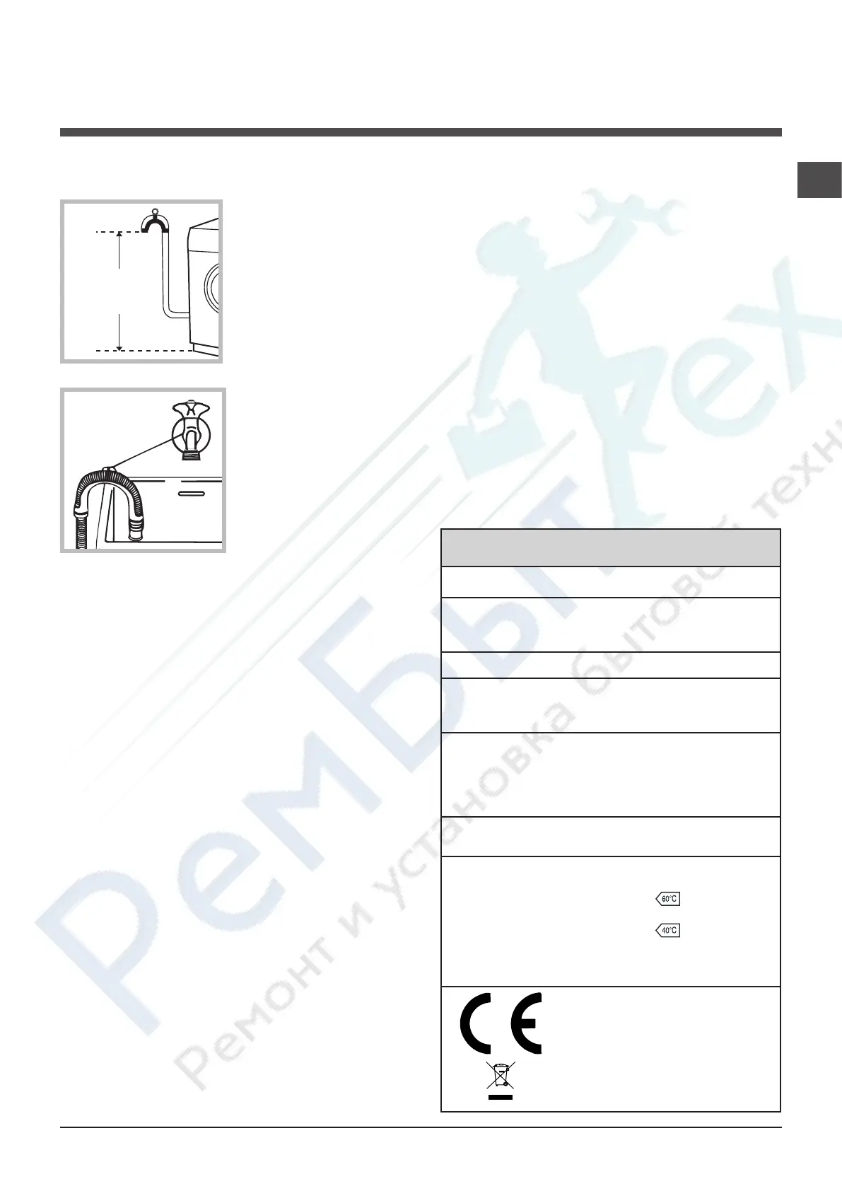 ! The washing machine must not be installed