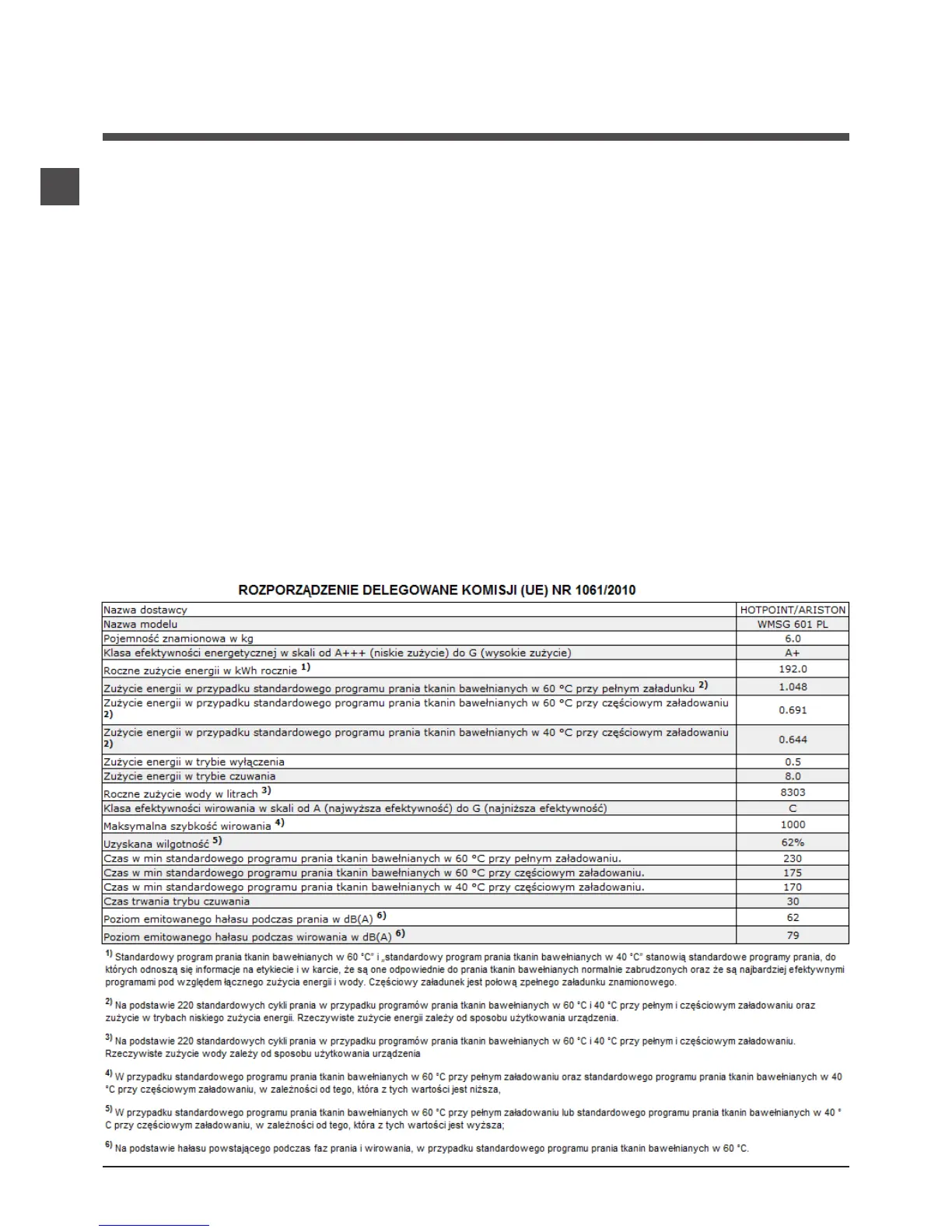 Informacje te znajdują się na tabliczce umieszczonej w tylnej części pralki oraz widocznej z przodu po otwarciu