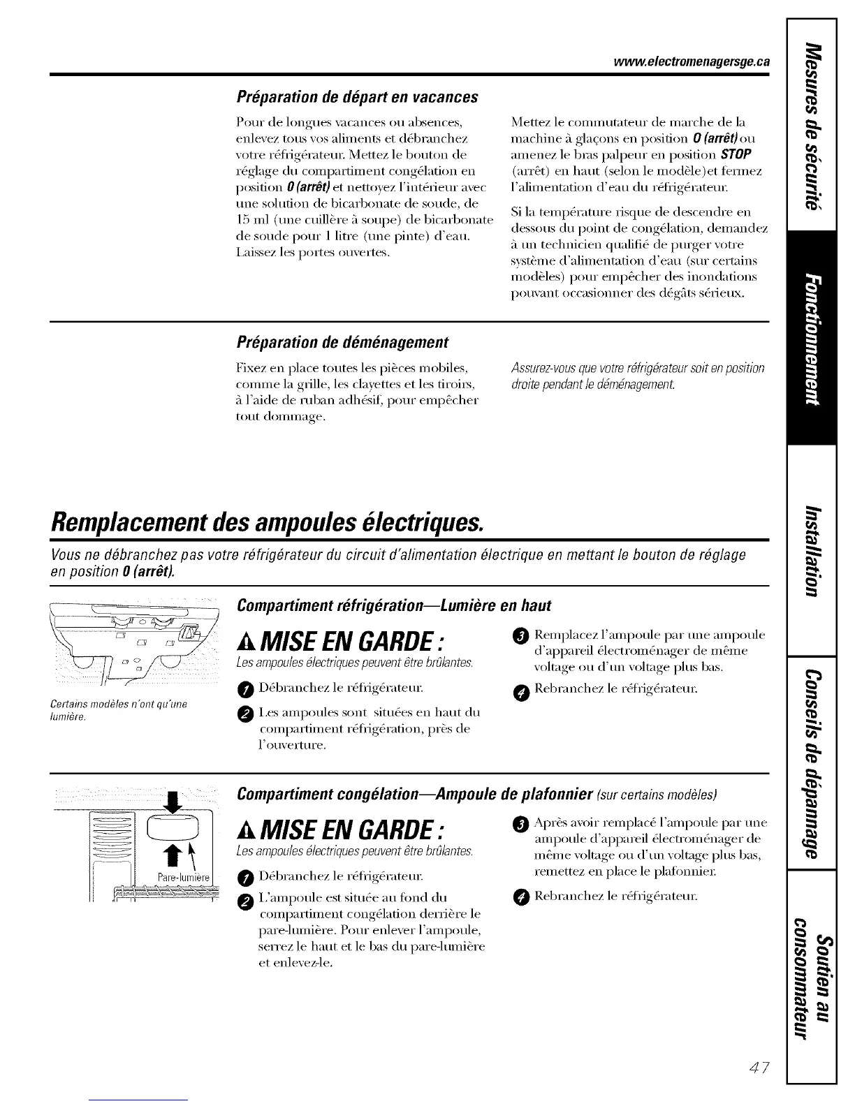 Vous no d6branchoz pas votro r6frig6rateur du circuit d'alimontafion 61octriquo on mottant Io boumn do r6glago