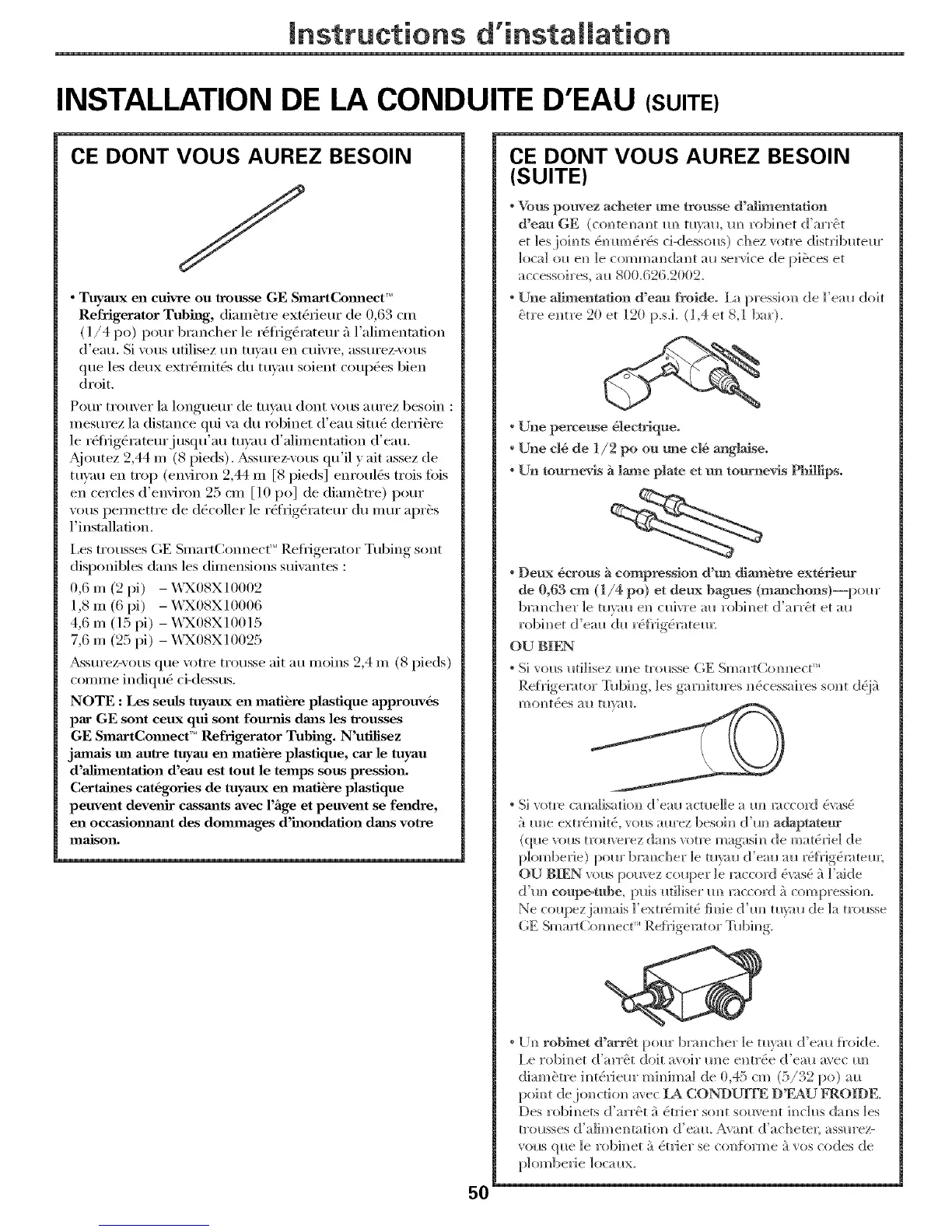 I,es trousses GE SmartConnect _"Refl_igerator Tubing sont